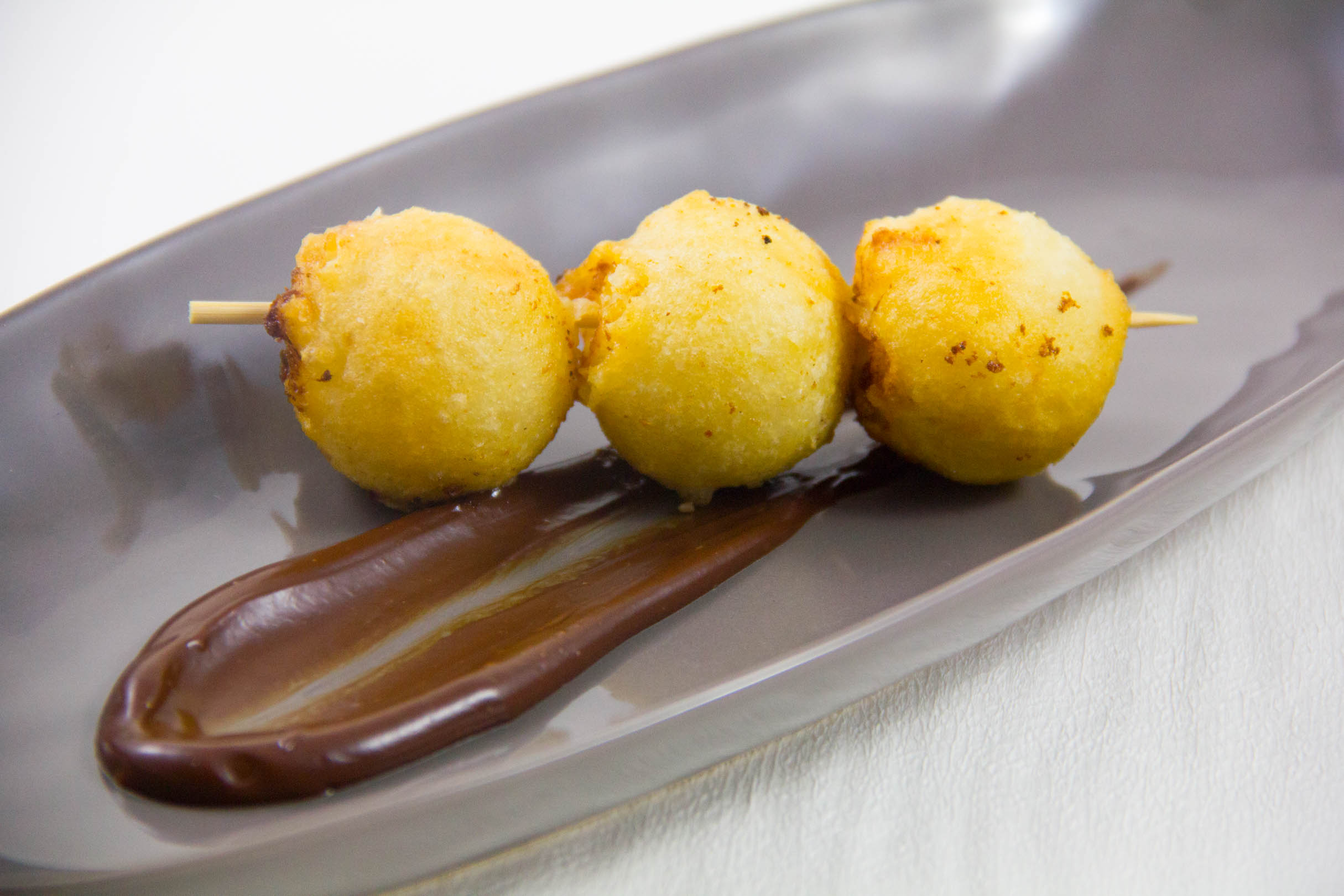 Piquez les beignets sur une brochette et servez-les avec un peu de chocolat fondu…A déguster sans attendre!