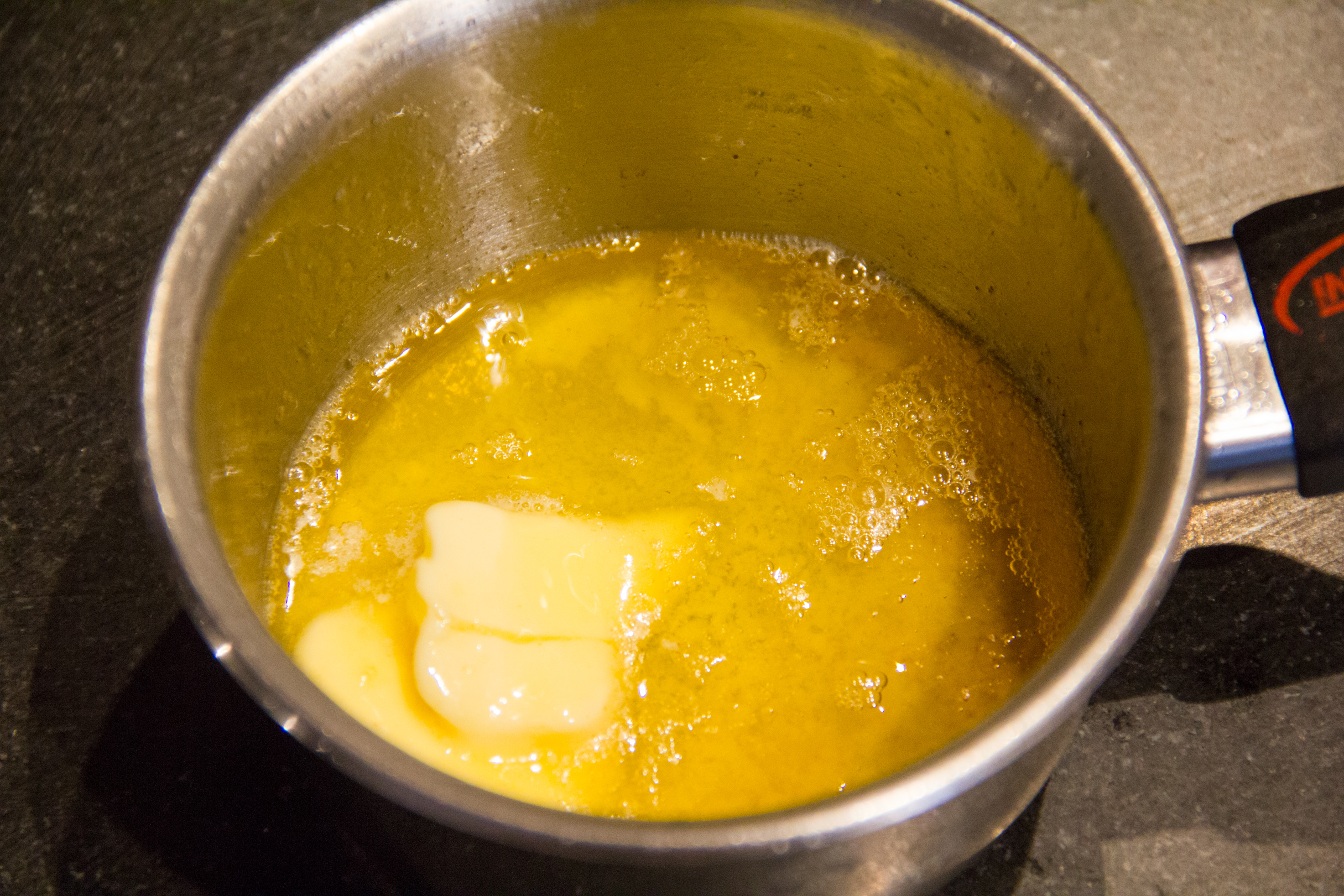 - Faites fondre le beurre (ne le chauffez pas de trop , il s’agit juste de le faire fondre).