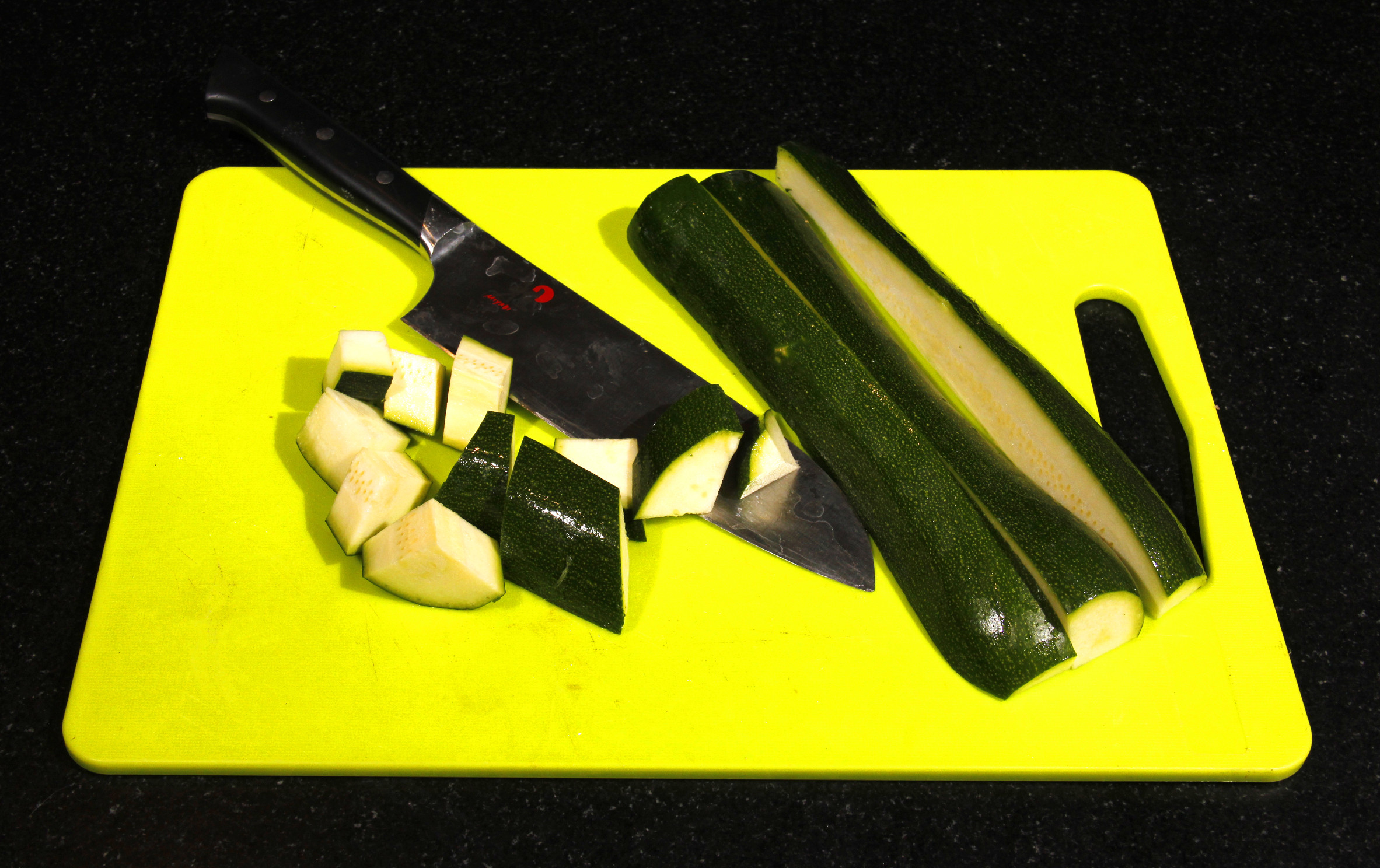 - Coupez la courgette en morceaux.