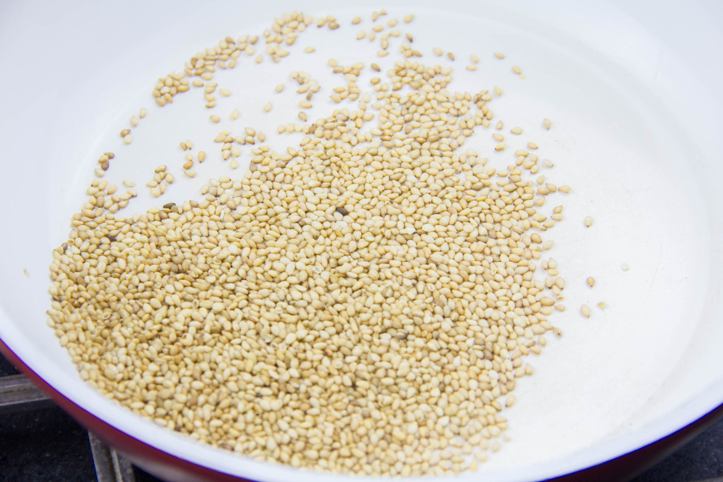 - Torréfiez les graines de sésame. Réservez.