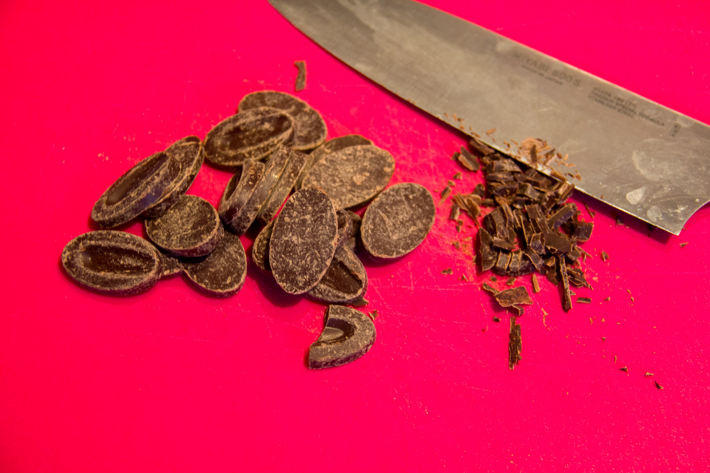 - A l’aide d’un couteau coupez le chocolat en petits morceaux.