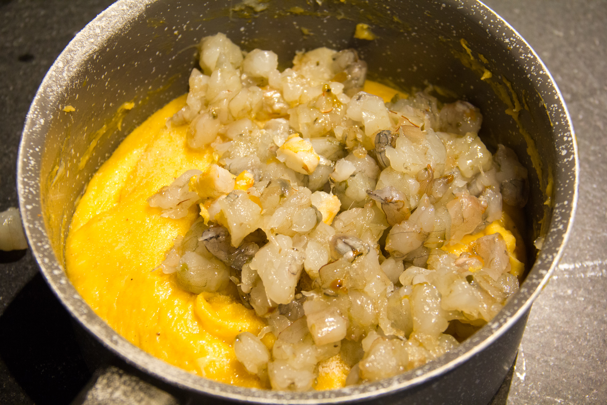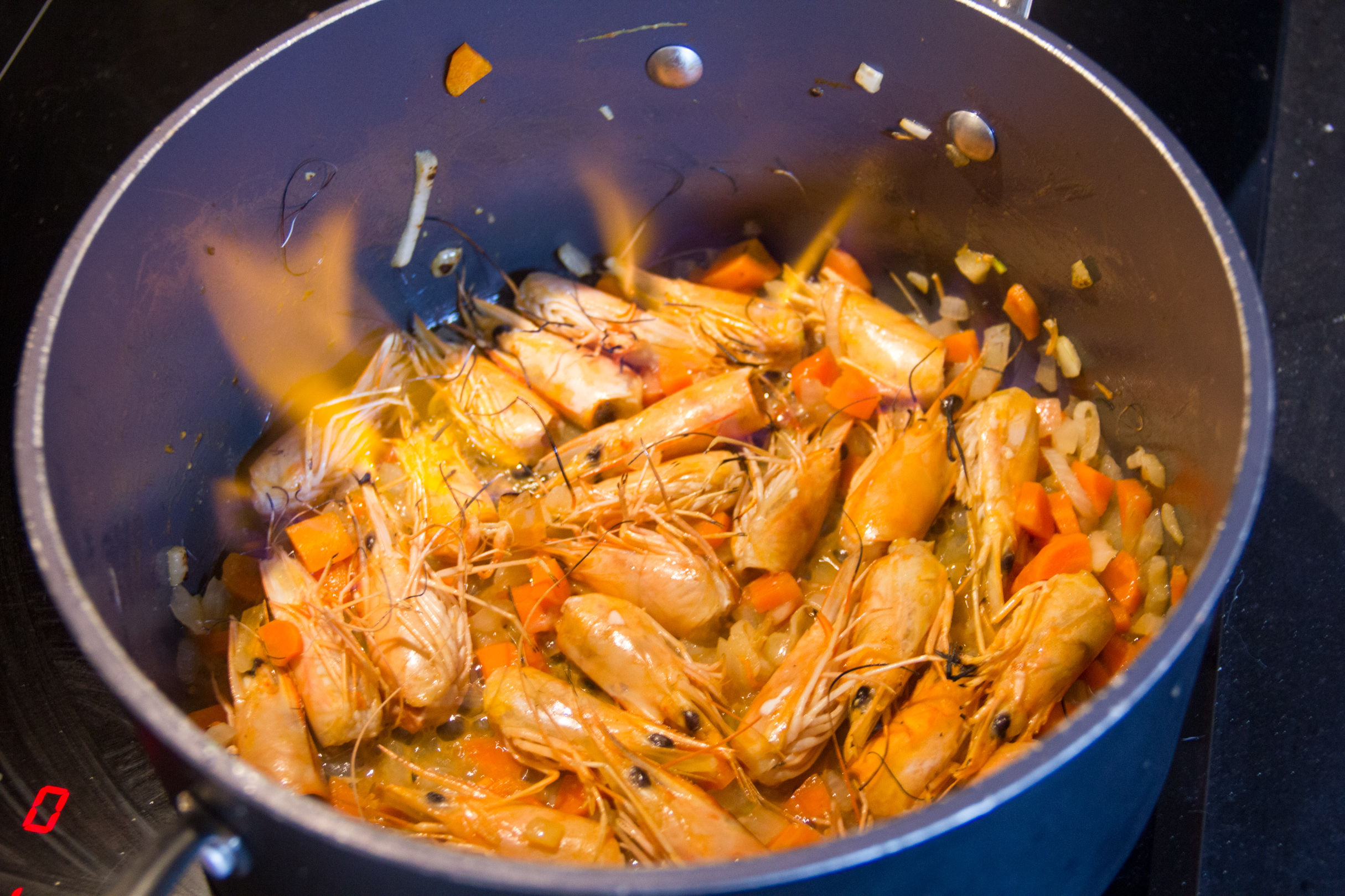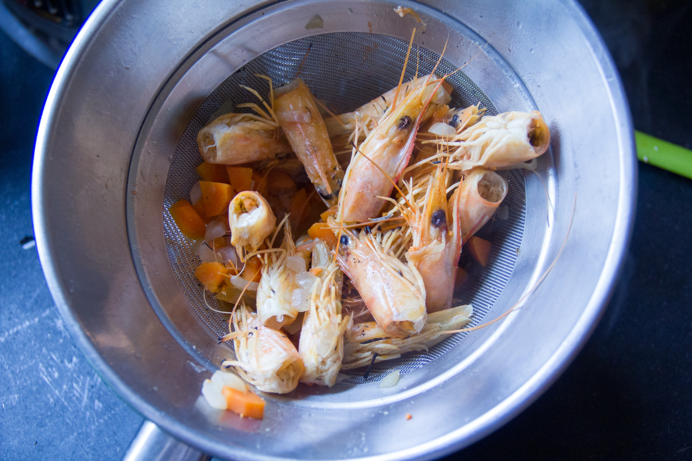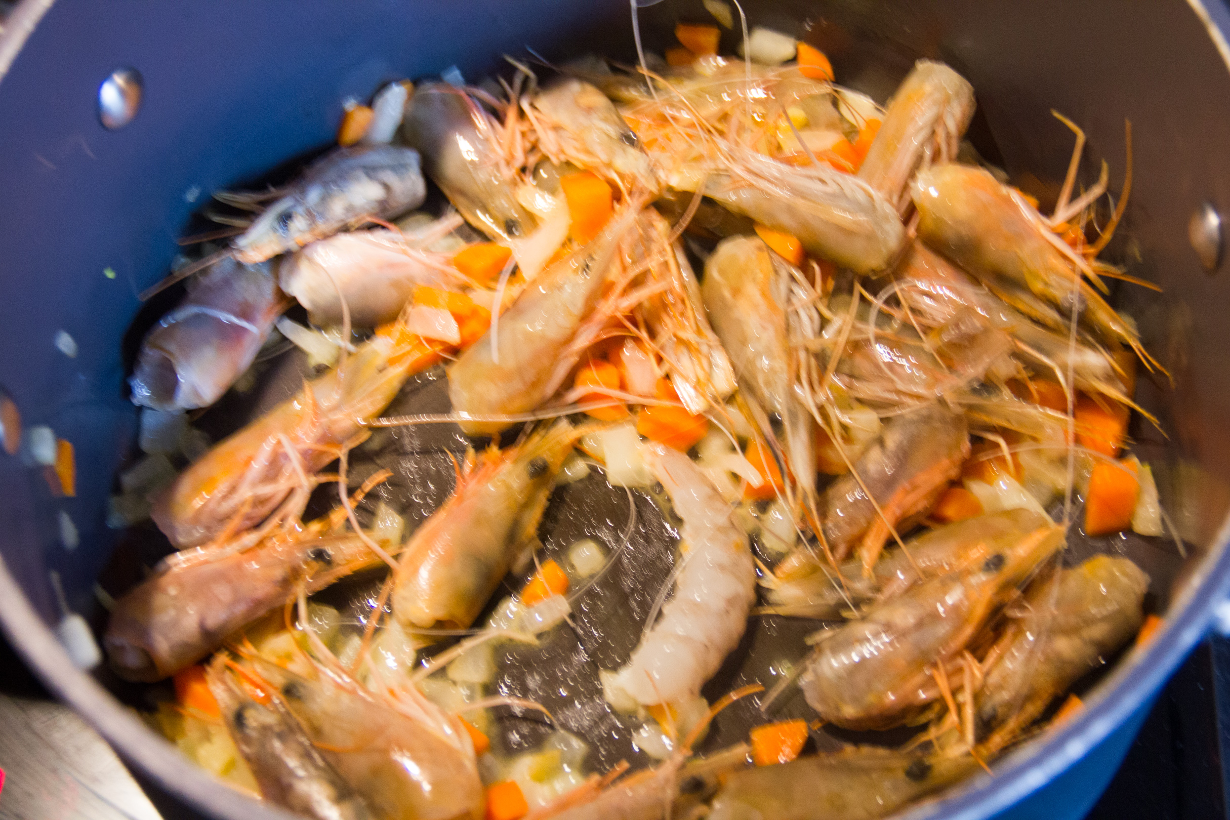 - Puis rajoutez les têtes de crevettes et poursuivez la cuisson encore quelques minutes.