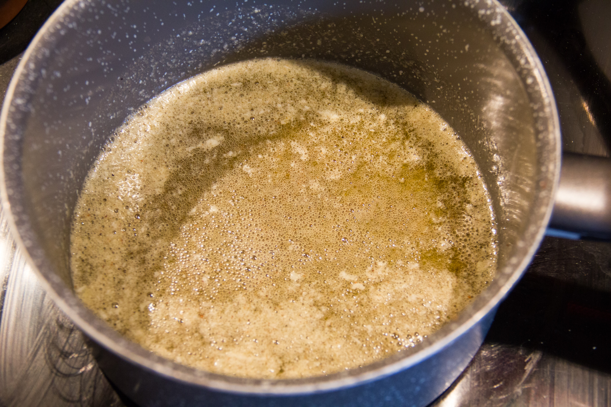 - Faites fondre le beurre dans une casserole avec le fumet de poisson.