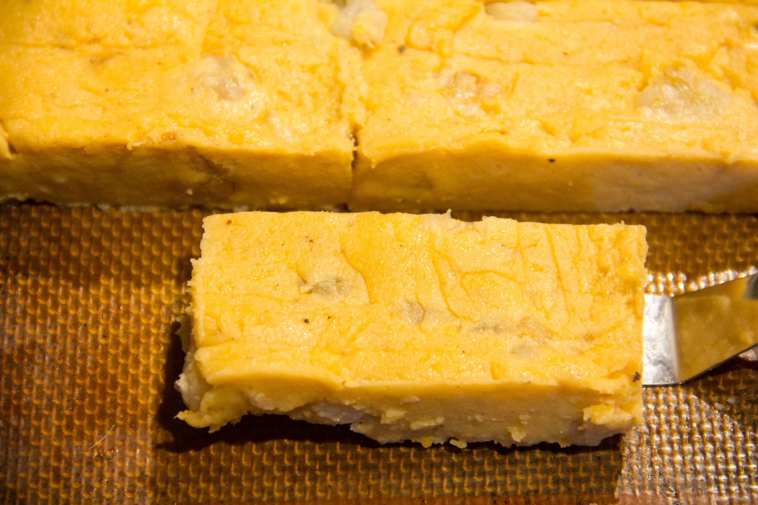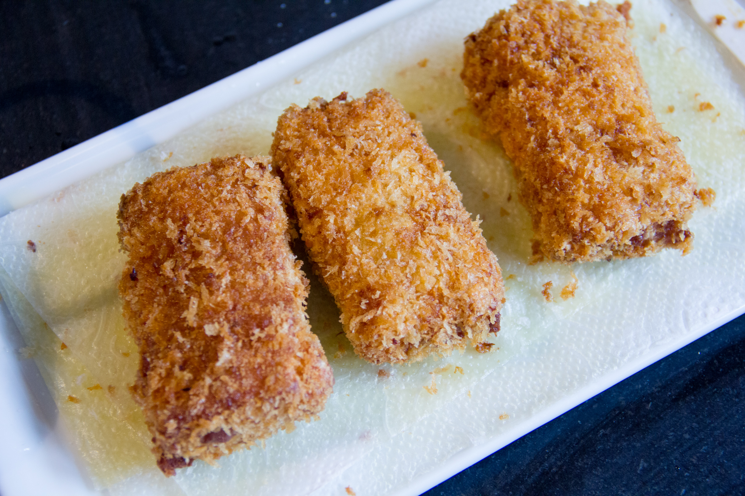 - Découpez vos croquettes à l’aide d’un couteau et soulevez-les à l’aide d’une petite spatule. Puis on passe à l’étape de la panure.