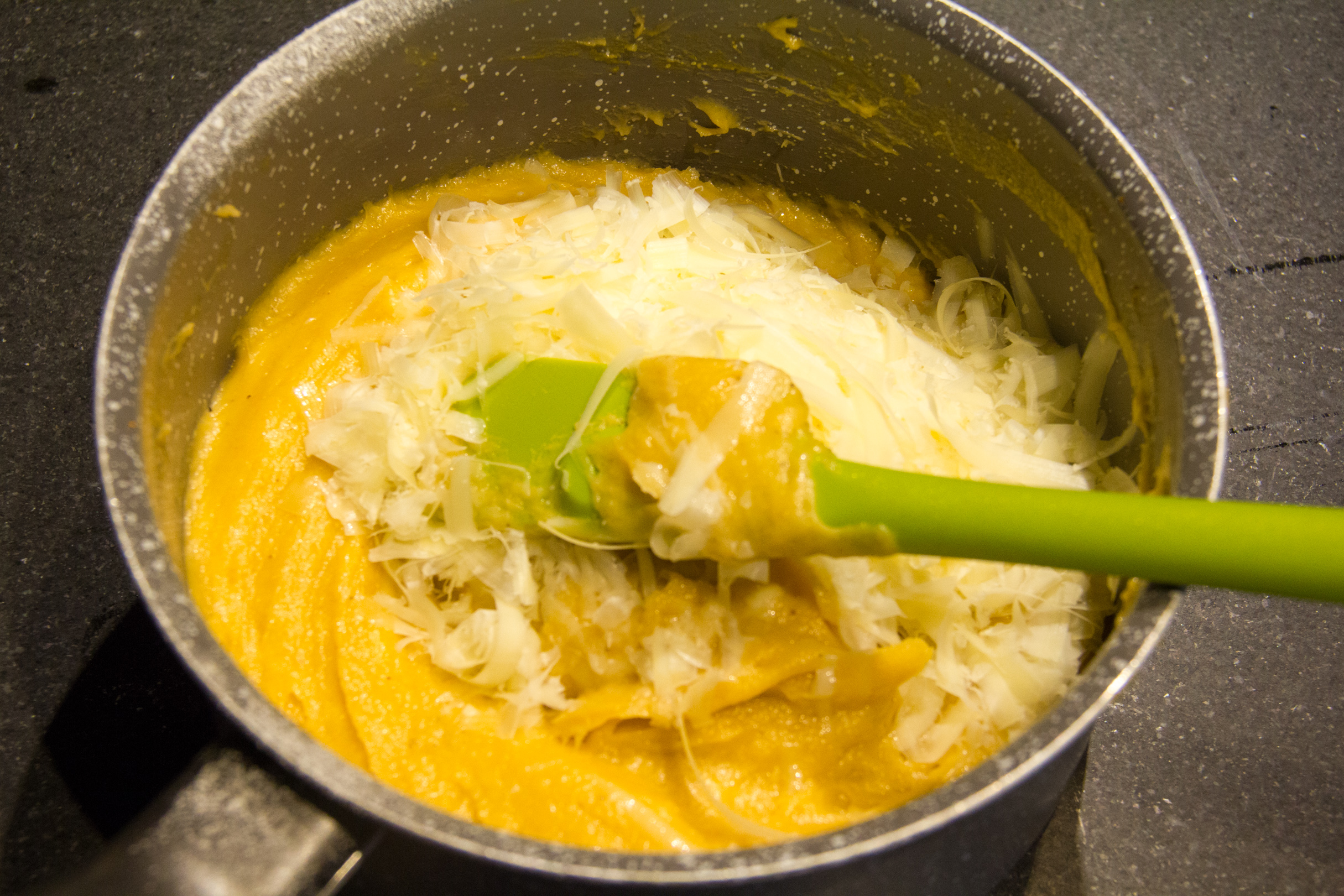- Hors feu ajoutez la farine et mélangez bien avec une spatule.
