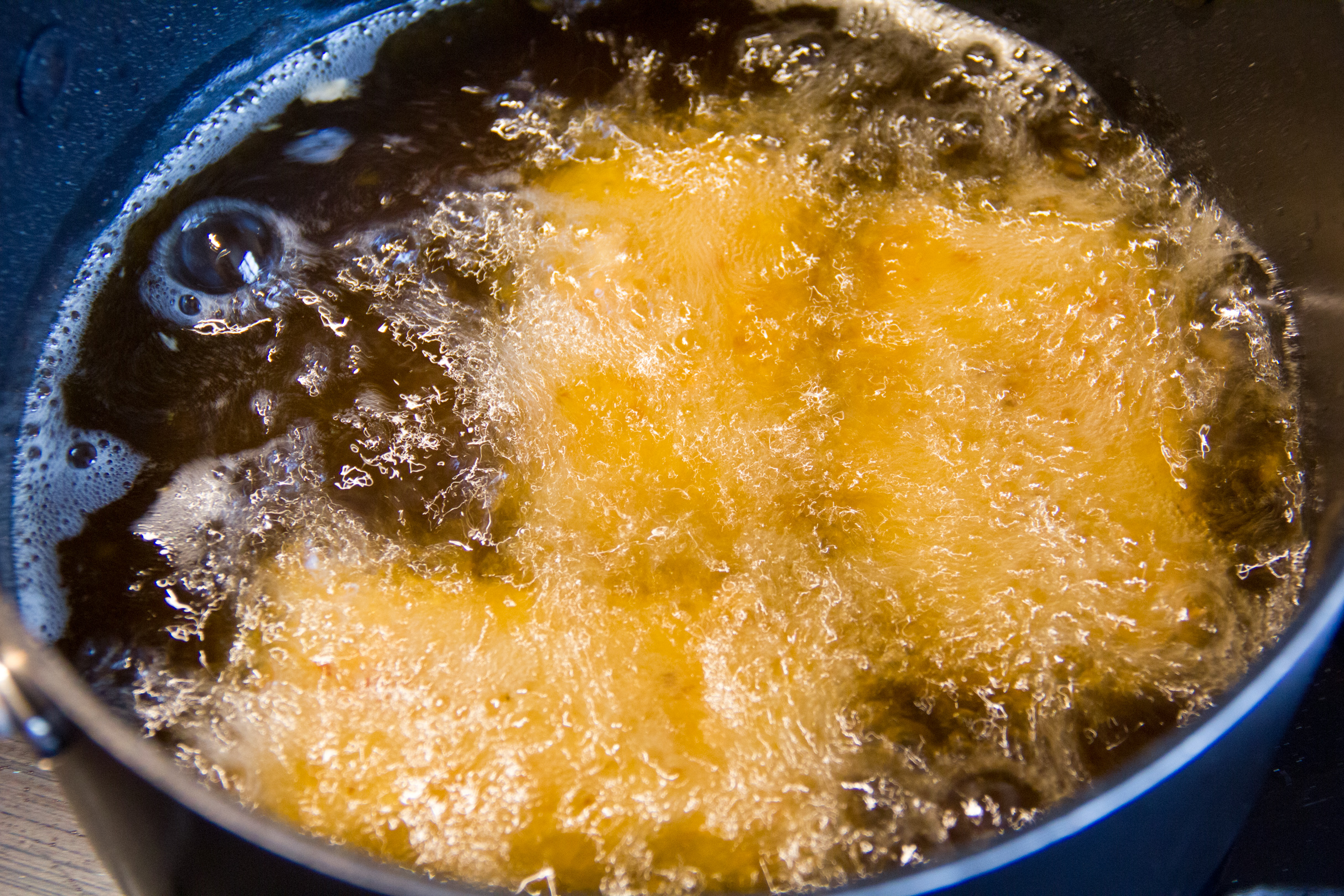 - Faites chauffer un bain de friture à 180°. Plongez-y vos croquettes jusqu’à ce qu’elles soient bien dorées.