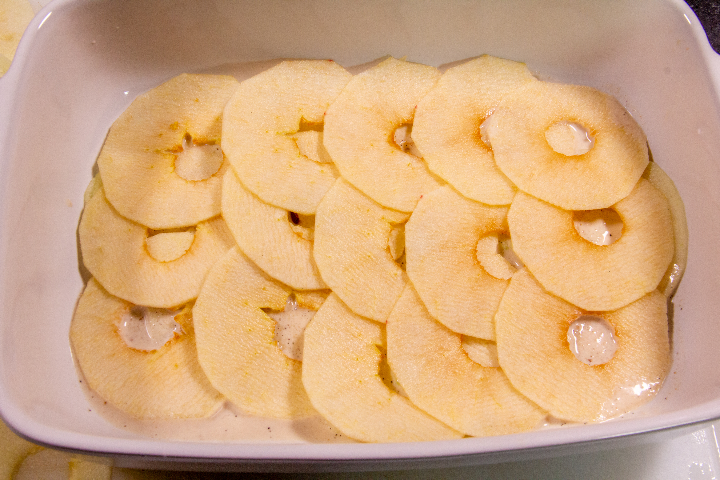 - Disposez les tranches de pommes dans un plat.