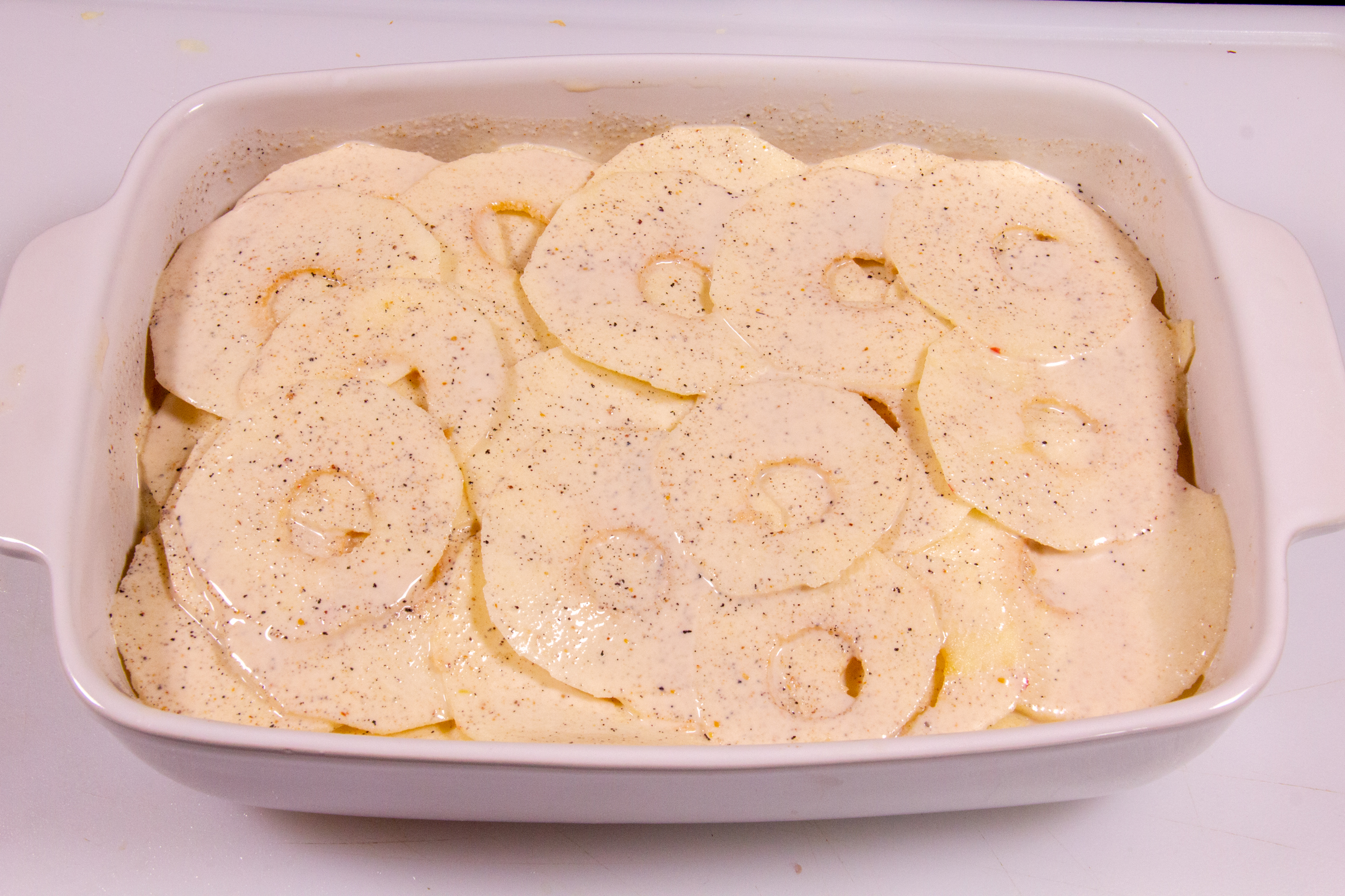 - Recouvrez avec la préparation à base de lait et de crème.
