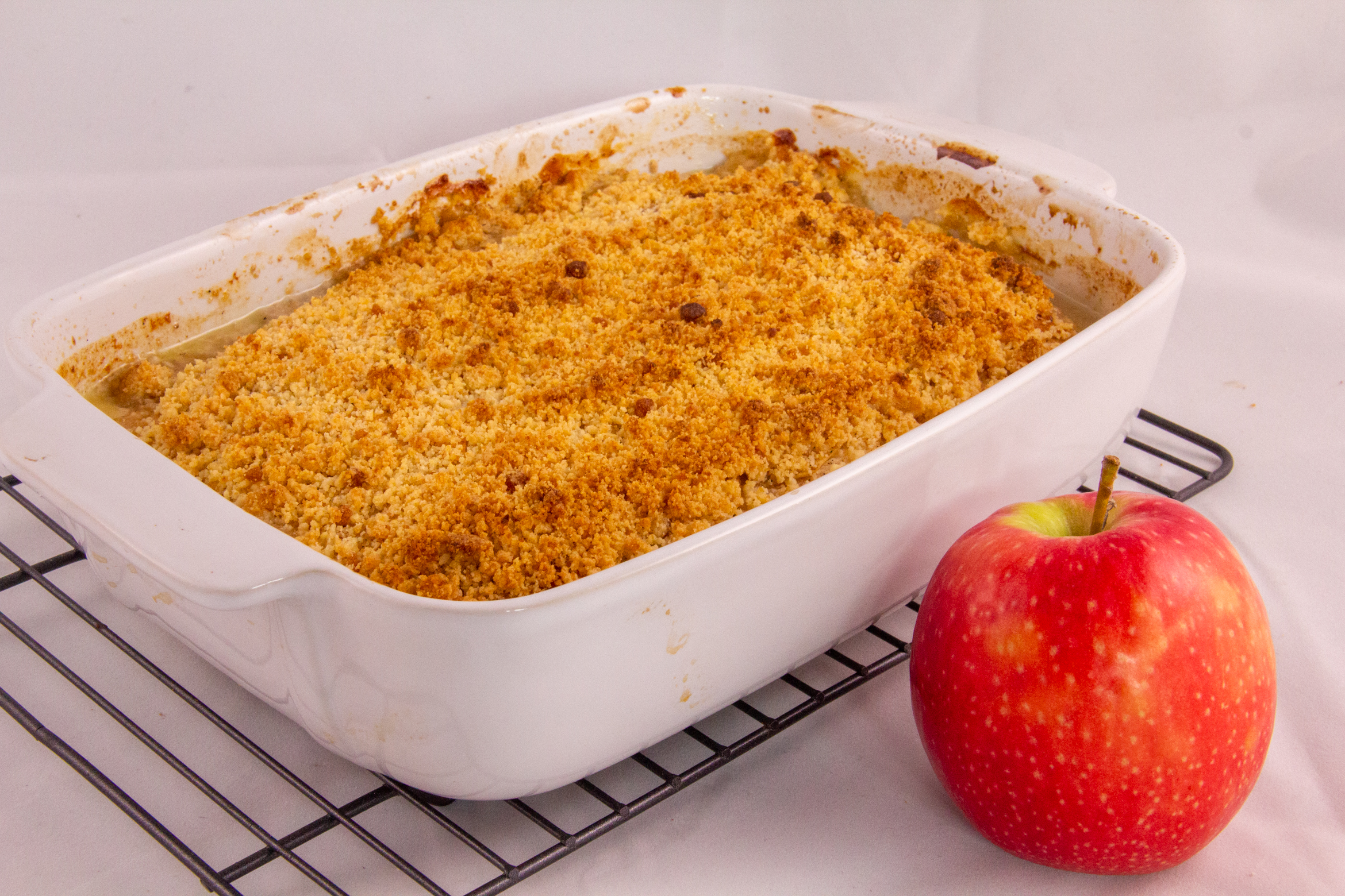 - Préchauffez le four à 200° ; enfournez à 200° pendant 25 minutes. Ouvrez la porte du four et émiettez le crumble sur les pommes. Réenfournez à 180° pendant 25 minutes. Servez tout chaud et régalez-vous!