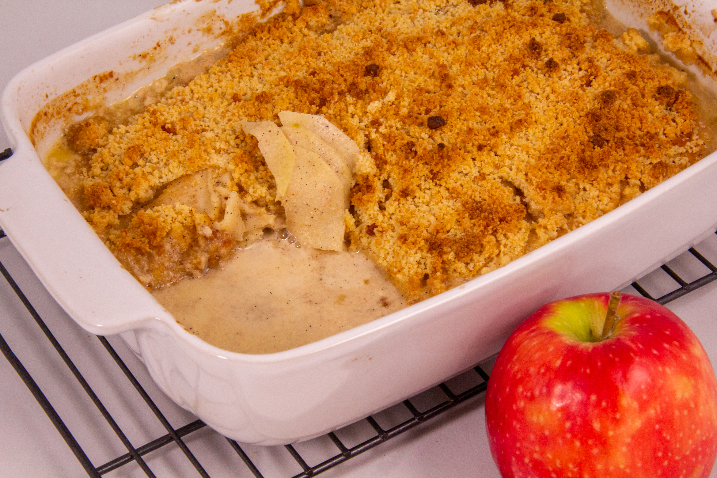 Voici un dessert inspiré du fameux plat salé à base de pommes de terre, le gratin dauphinois. Mais aujourd’hui on remplace les pommes de terre par des pommes et on amène du croquant avec un délicieux crumble…Un excellent plat familial mais surtout une pure merveille de gourmandise!