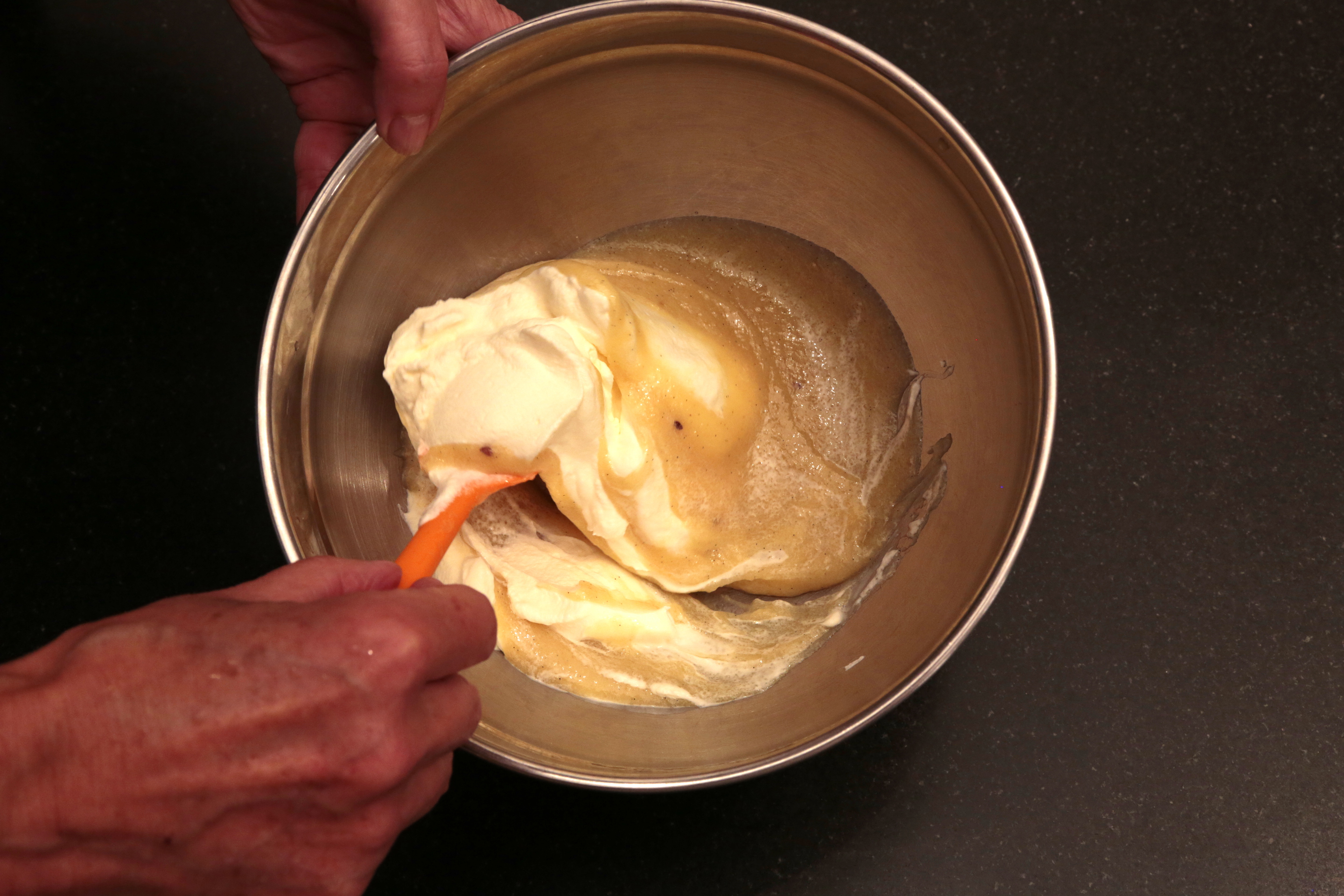 - Incorporez-la délicatement à la crème pâtissière à l’orange à l’aide d’une maryse.