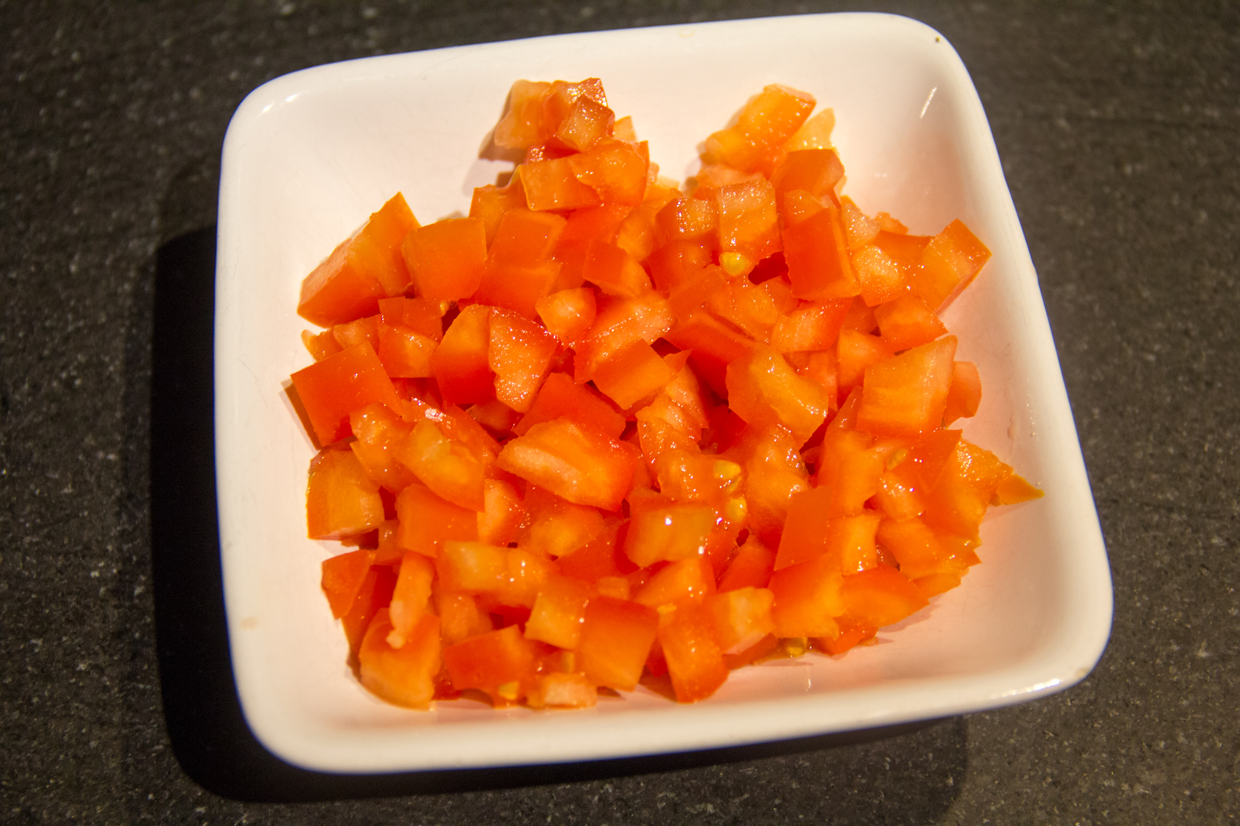 - Coupez les tomates en petite brunoise.