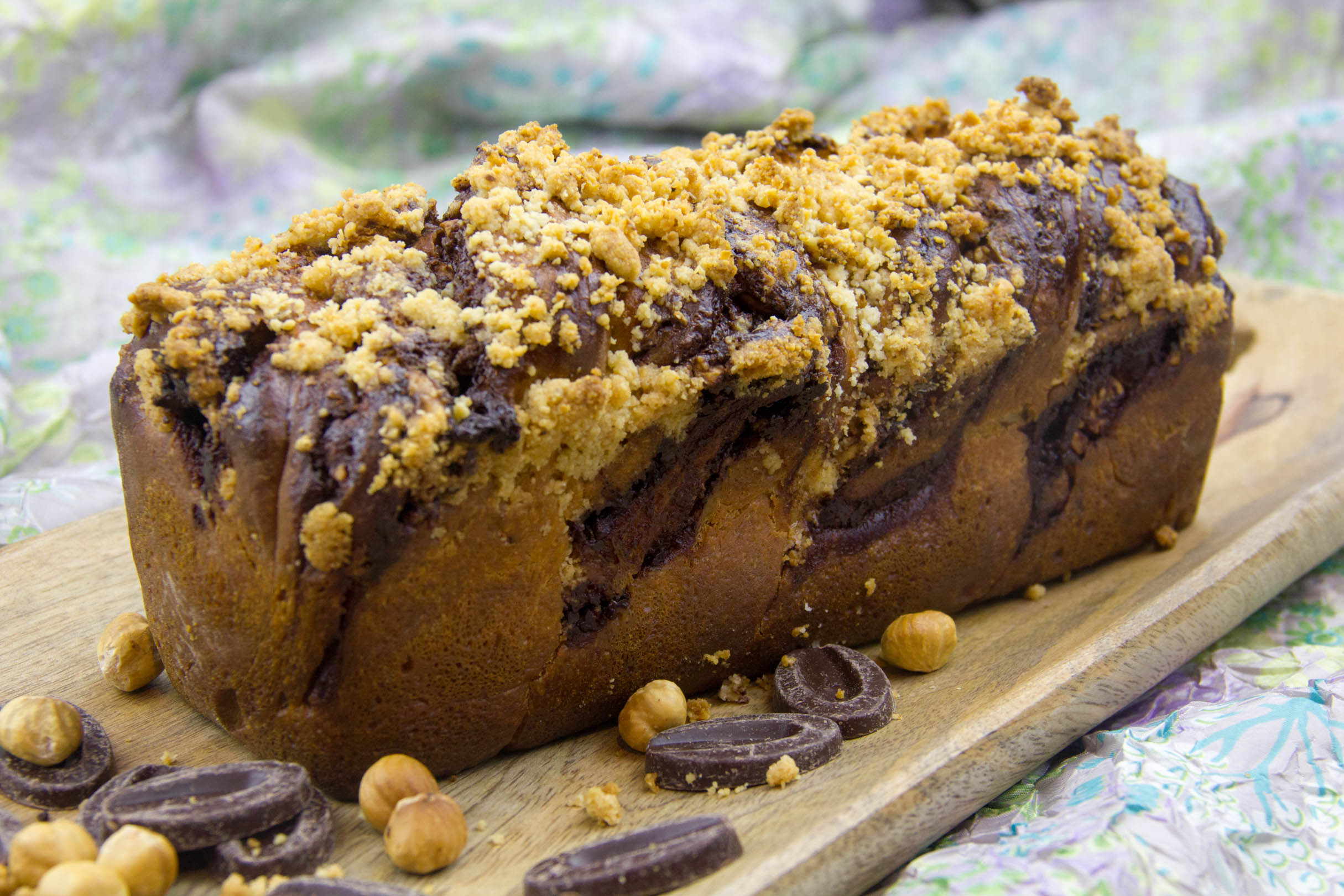 Pour cette sixième semaine du Meilleur pâtissier Cyril Lignac et Mercotte nous proposent le thème des gâteaux roulés et en particulier la recette du Krantz cake. C’est un pâte levée, type pâte à brioche que l’on roule d’une manière particulière et y ajoutant un insert au chocolat…. Cela donne un délicieux gâteau roulé tendre et moelleux particulièrement apprécié en Israël. Personnellement, j’y rajoute des noisette torréfiées au four qui apportent du croquant qui se marie à merveille avec le chocolat… Ce gâteau se nomme également Babka au chocolat.