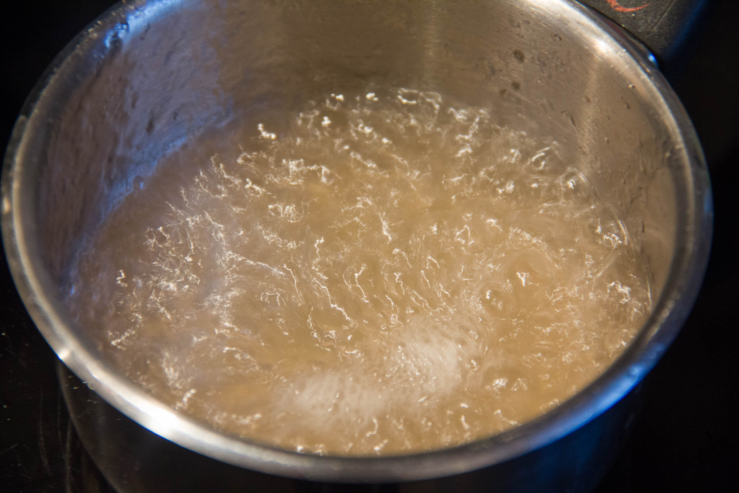 - Faites chauffer trois cuillerées à soupe de gelée de coing dans une petite casserole avec une à deux cuillerées à soupe d’eau. Il faut obtenir un mélange bien fondu.