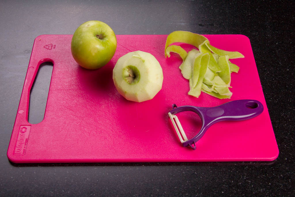 - Pelez les pommes. Coupez les en deux et ôtez-en le cœur. Prélevez 300 g de pomme que vous mettrez dans le mixeur avec le concombre.