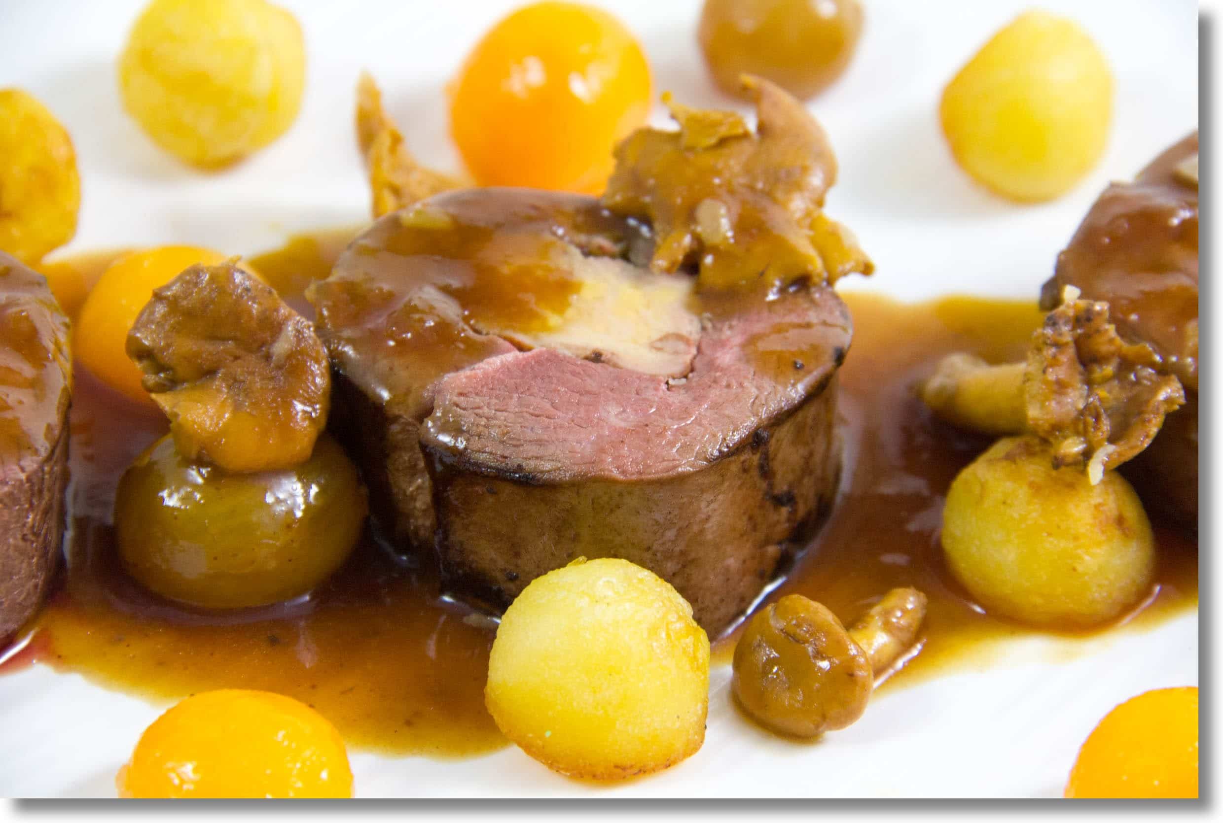 | Foie Gras–Stuffed Duck Breast with Grape Sauce