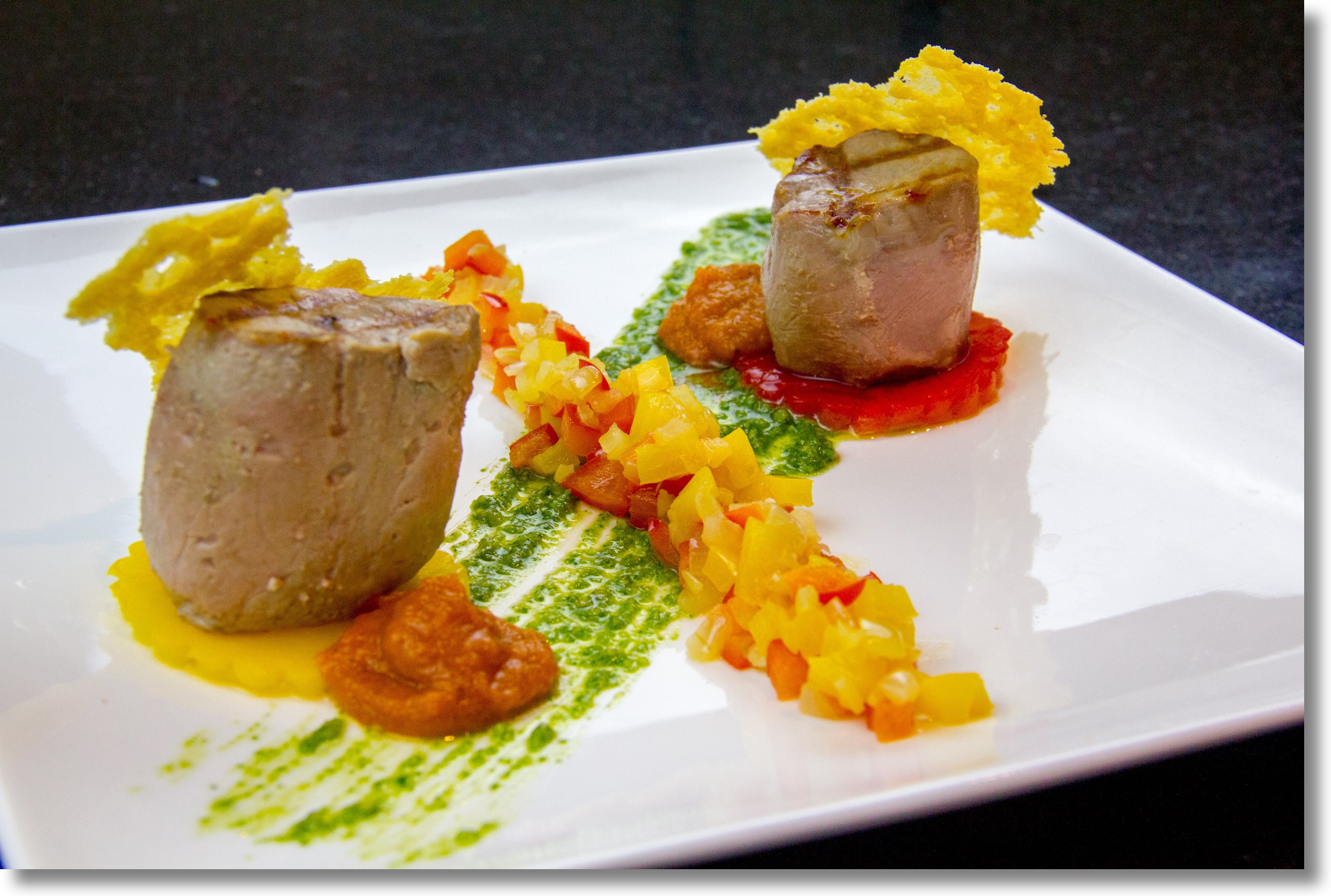 | Iberian Pork, Pepper Ratatouille and Parmesan Crisps