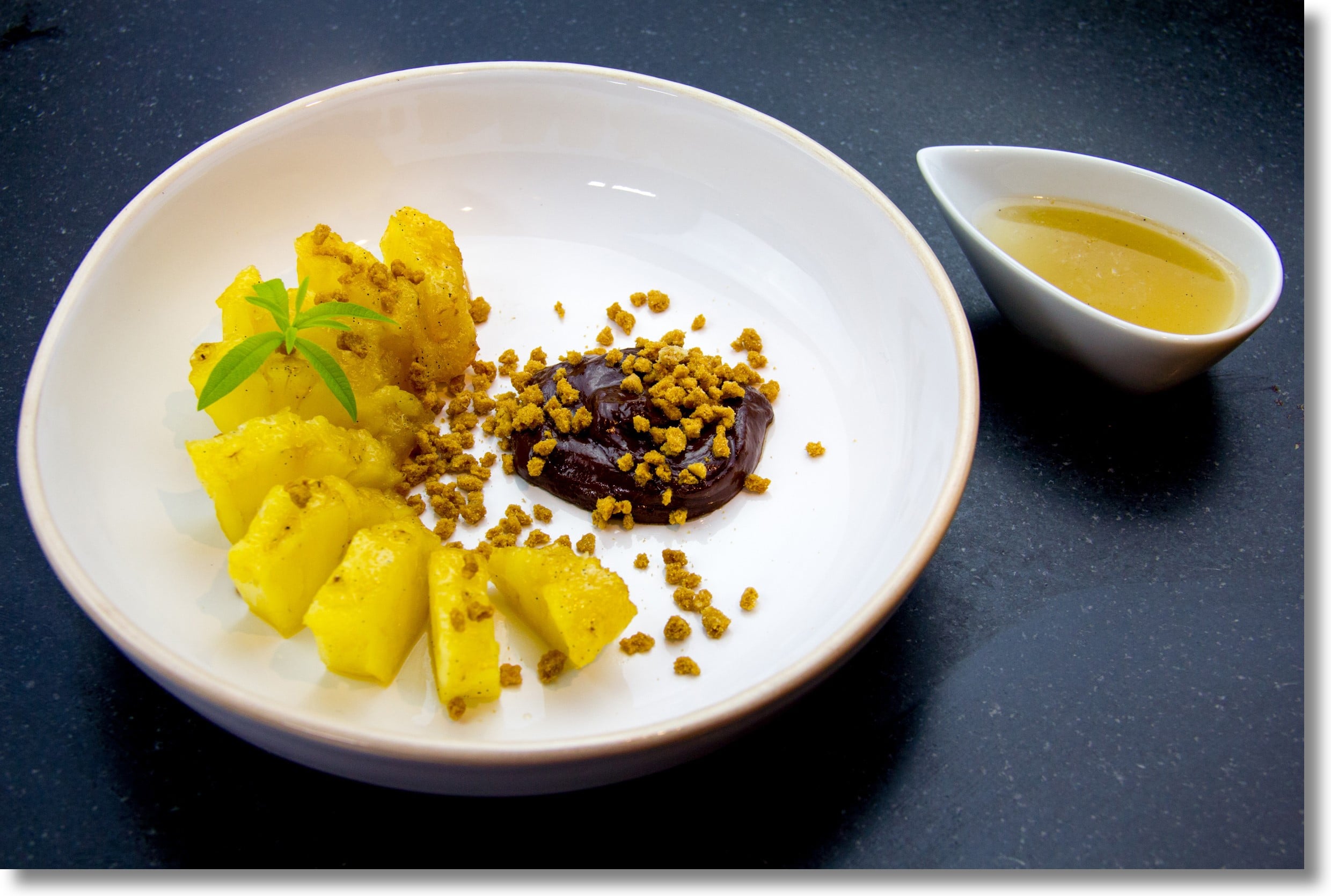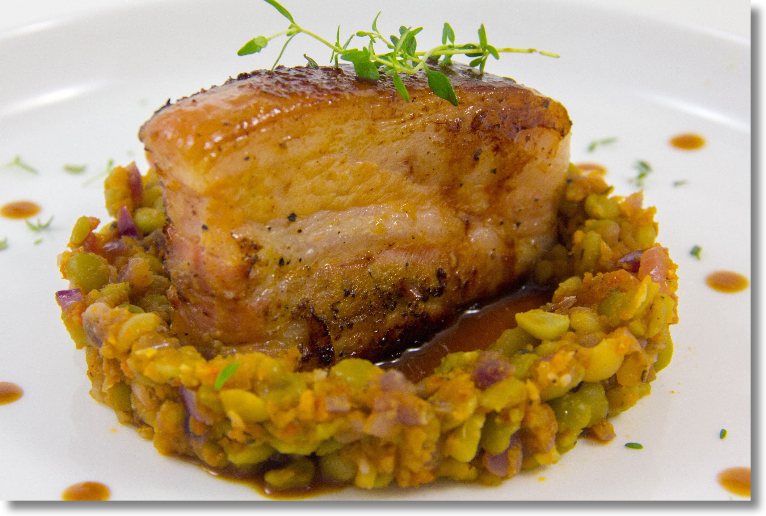 | Sweet and Tangy Pork Belly Au Jus with Split Peas and Thyme