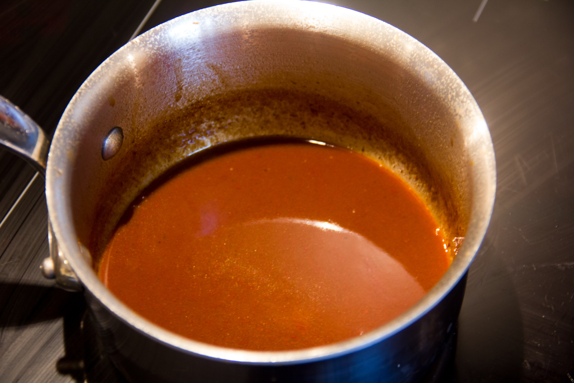 - Faites réduire le fond de veau avec le porto: vous devez obtenir un liquide légèrement sirupeux. Ajoutez alors le carré de chocolat pour lier et parfumer la sauce. Rectifiez l’assaisonnement. Si la sauce vous parait un peu amer vous pouvez y ajouter une pointe de miel. Réservez.