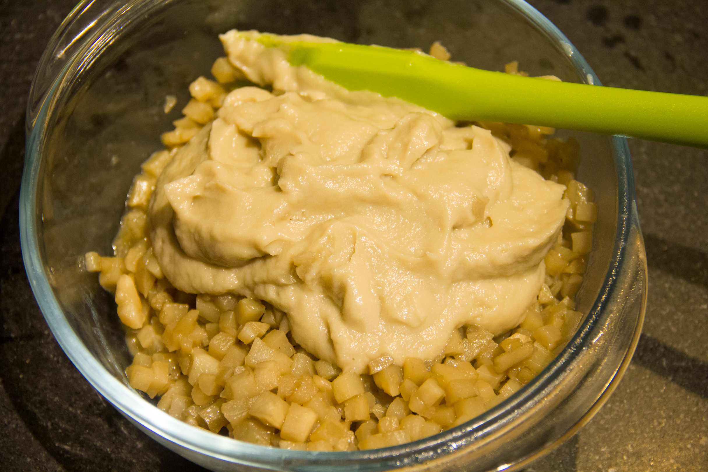 - Égouttez les dés de topinambour. Mixez-en un tiers.