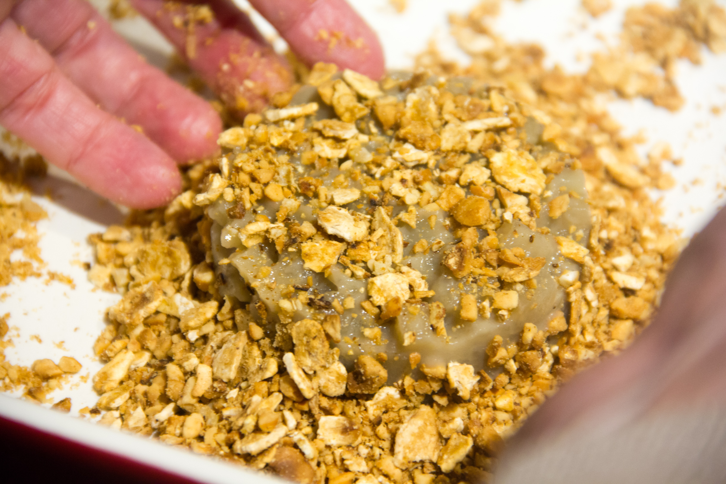 - Placez les noisettes dans un petit sac plastic puis écrasez-les avec un rouleau à pâtisserie. Réservez.
