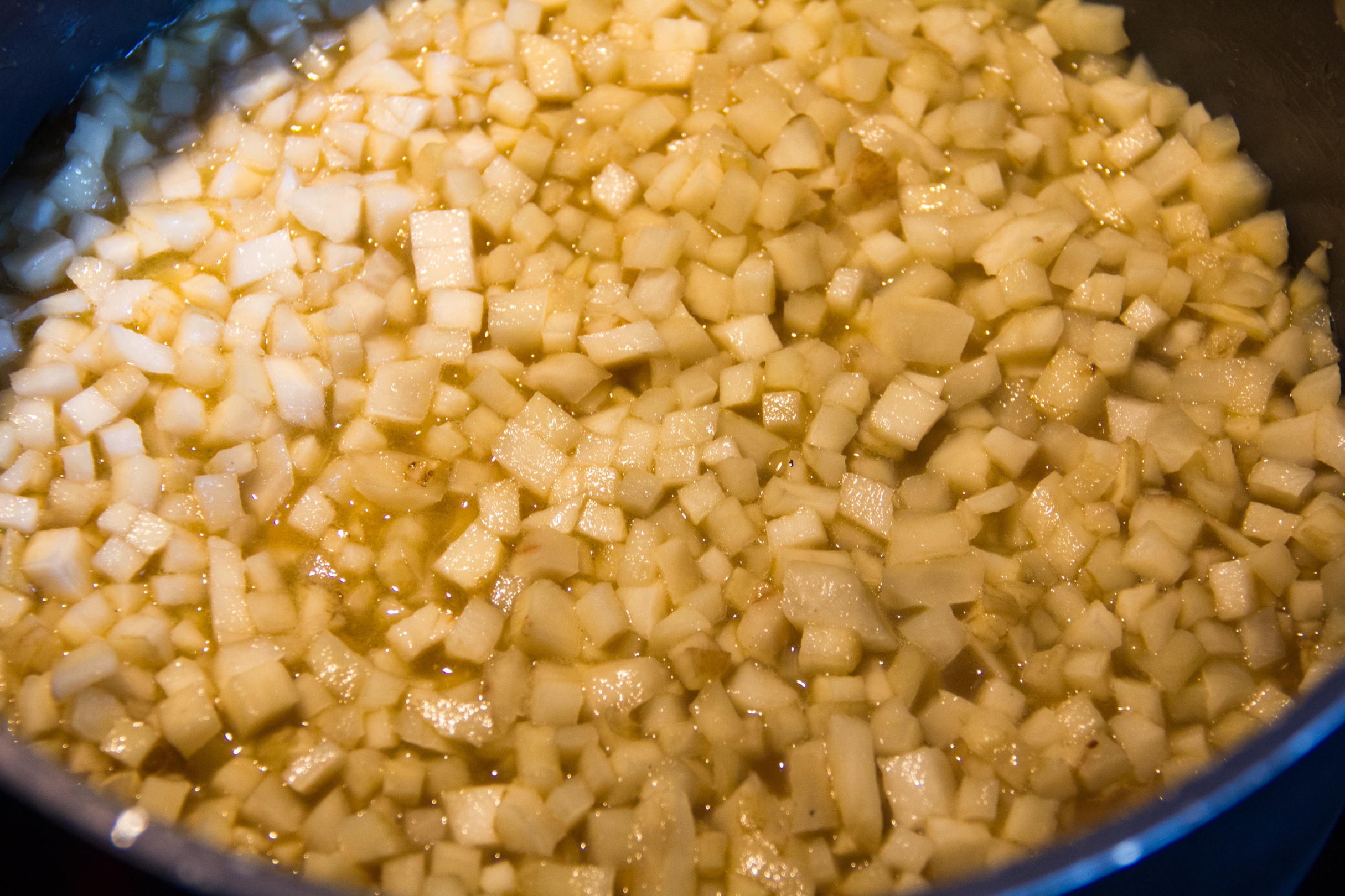 - Versez la brunoise de topinambour dans une casserole avec le fond de volaille et une noix de beurre. Laissez cuire à feu doux. Le temps de cuisson est fonction de sa maturation: les petits dés doivent être tendres mais doivent garder de la tenue…