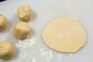- Reformez une jolie boule que vous allez aplatir avec la plat de la main ou un rouleau.