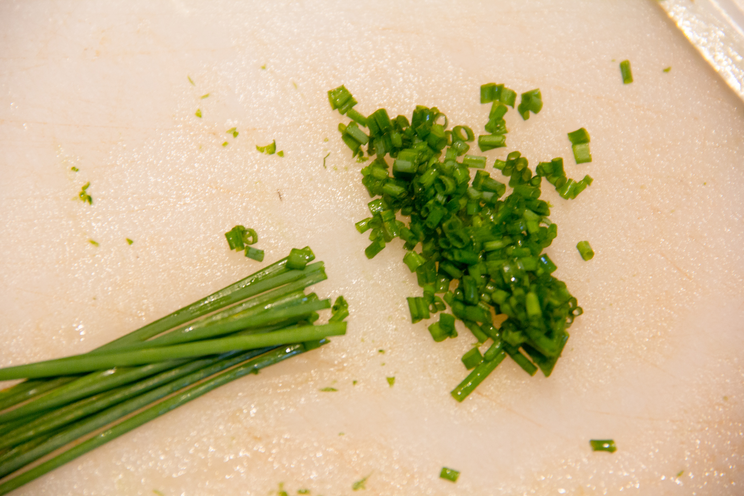 - Ciselez la ciboulette à l’aide d’un couteau .