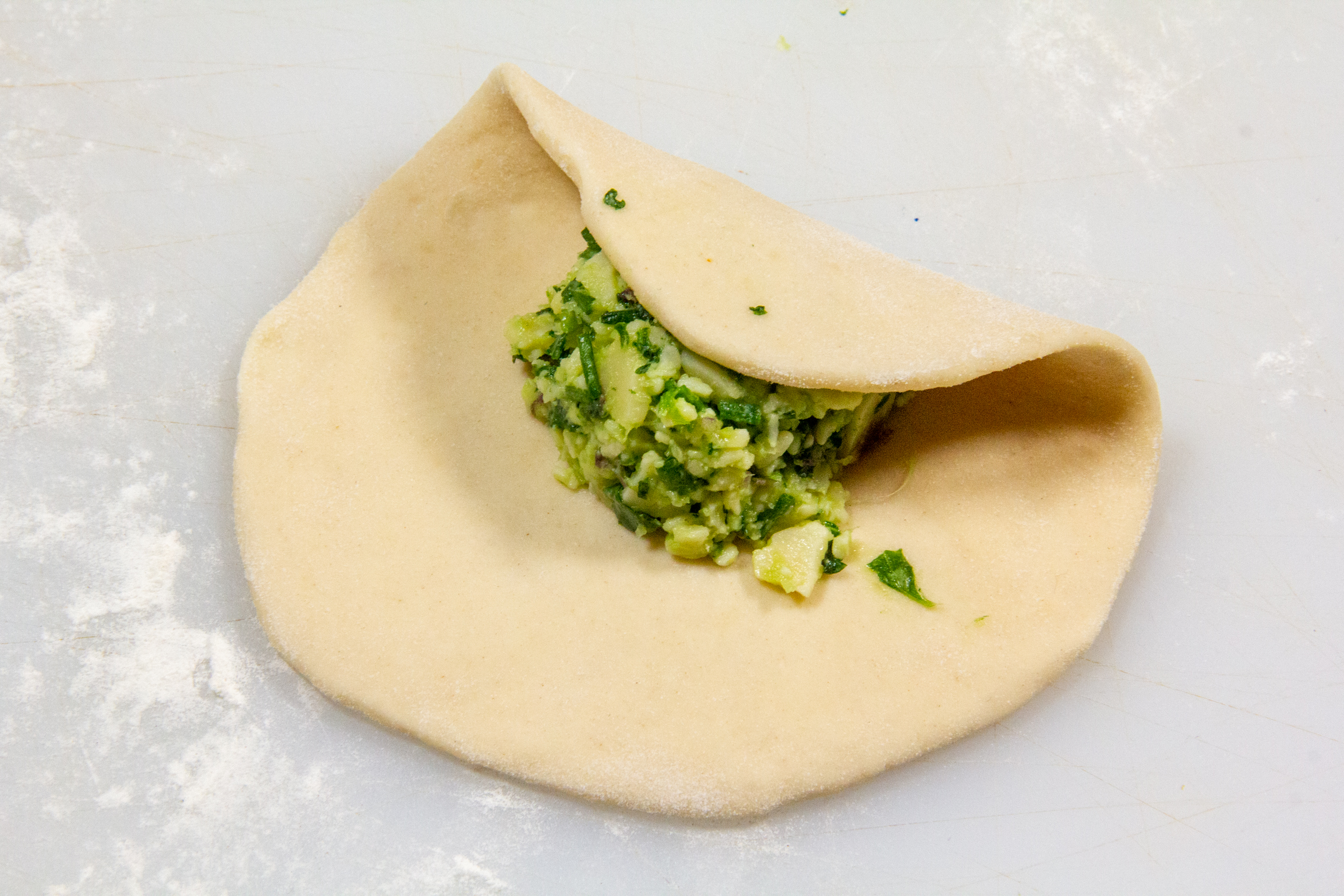 - Rabattez les bords sur la farce.