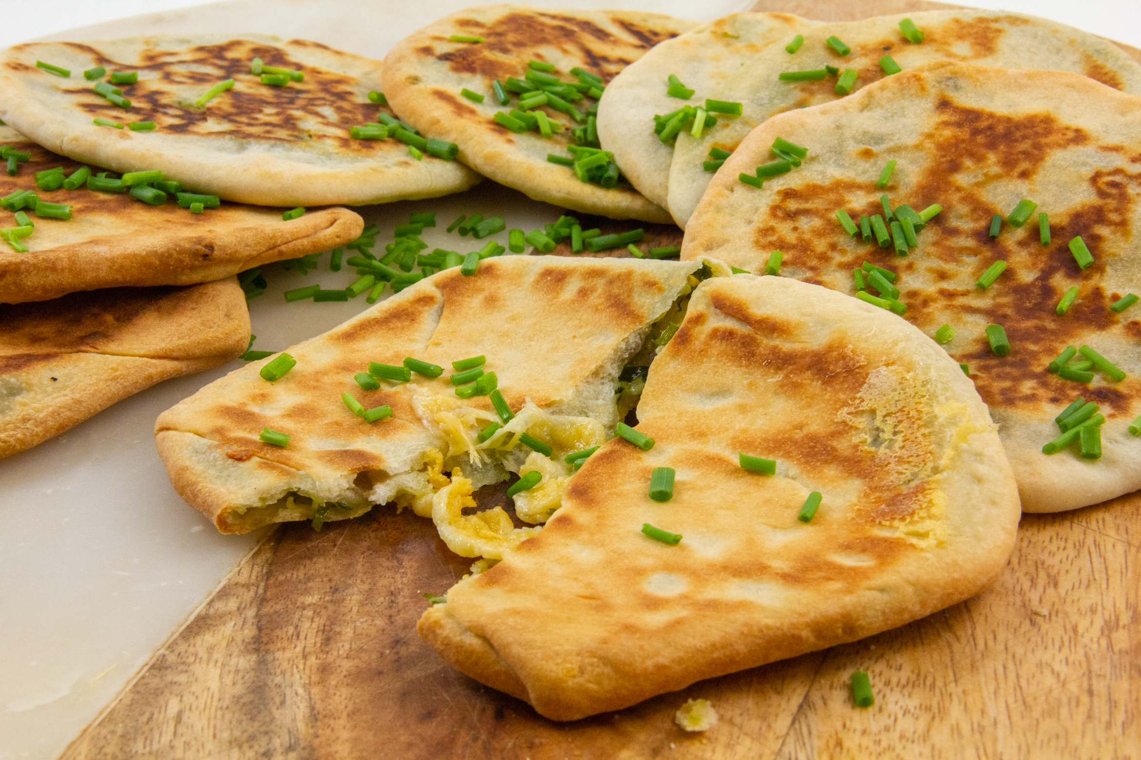 Le naan est une feuille de pain, faite de farine de blé et cuite sur la paroi brûlante d’un four. C’est un pain de consommation courante dans plusieurs régions d’Asie; il se prépare soit nature, soit fourré. Je vous le propose aujourd’hui au fromage et aux herbes.