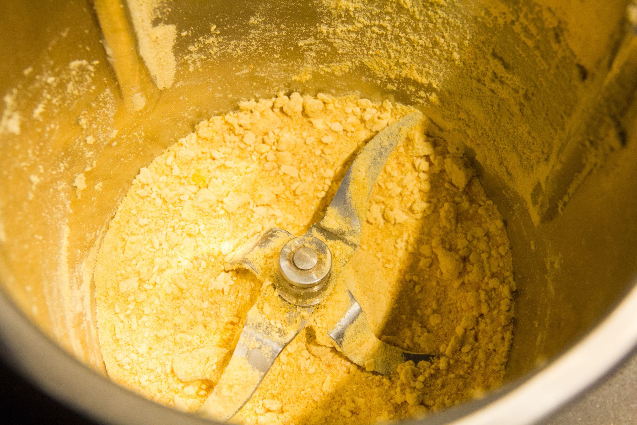 - Mélangez alors continuellement. Le mélange va devenir très sableux dans un premier temps.