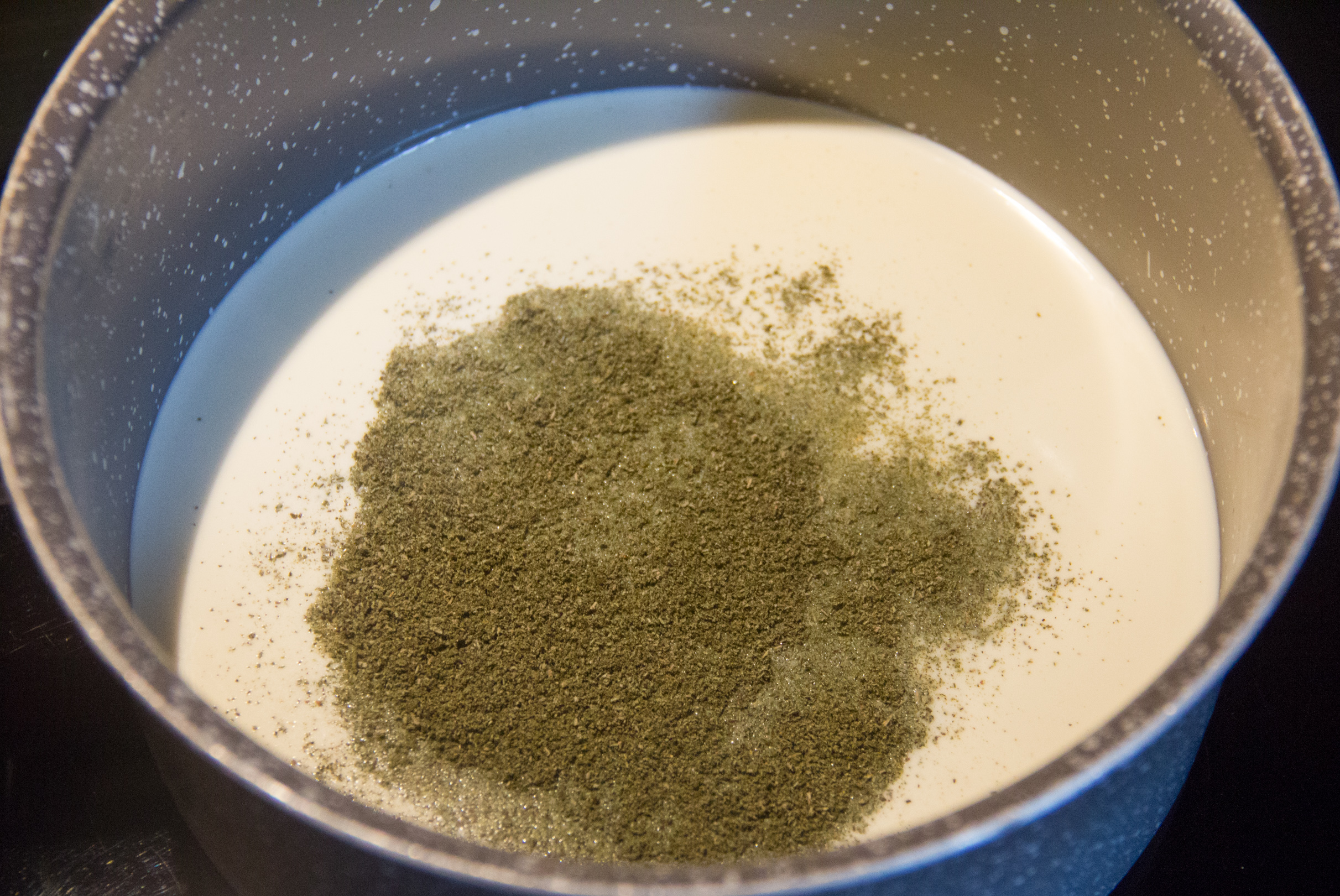 - Faire chauffez le lait avec la gousse, les graines de vanille et la poudre de romarin.