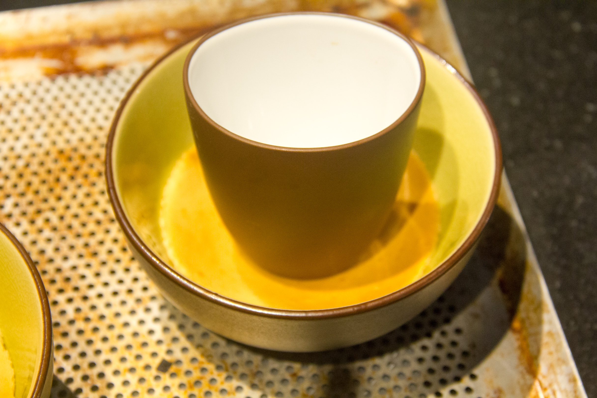 - Puis déposez rapidement les tuiles dans le fond d’un bol et posez un petit récipient dessus pour bien arrondir le fond. Attention c’est chaud mais il faut agir rapidement. Au besoin gardez vos tuiles non moulées au four pour qu’elles restent molles en attendant de les travailler et de leur donner leur forme.