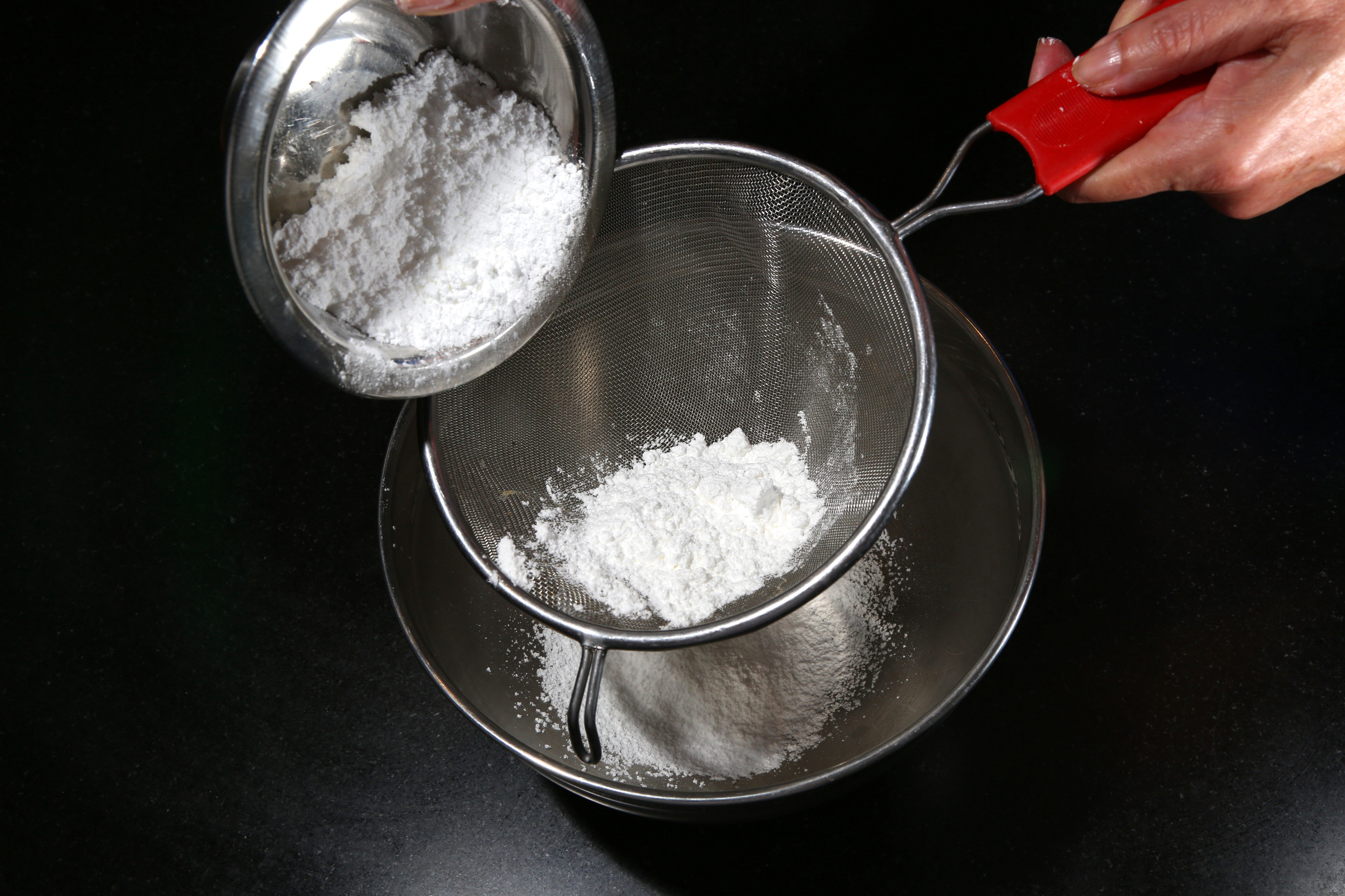 - Versez un tiers du lait chaud sur le mélange jaune sucre. Mélangez bien. Ajoutez la farine tamisée et reversez le tout dans la casserole de lait.