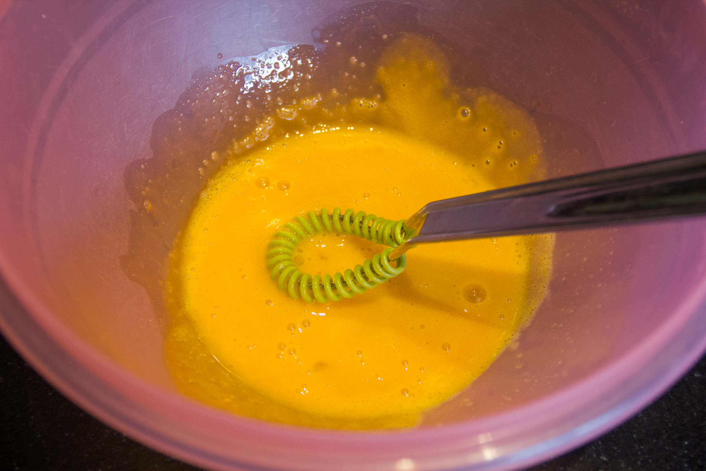 - Battez un œuf avec un petit fouet pour bien mélanger le jaune et le blanc.