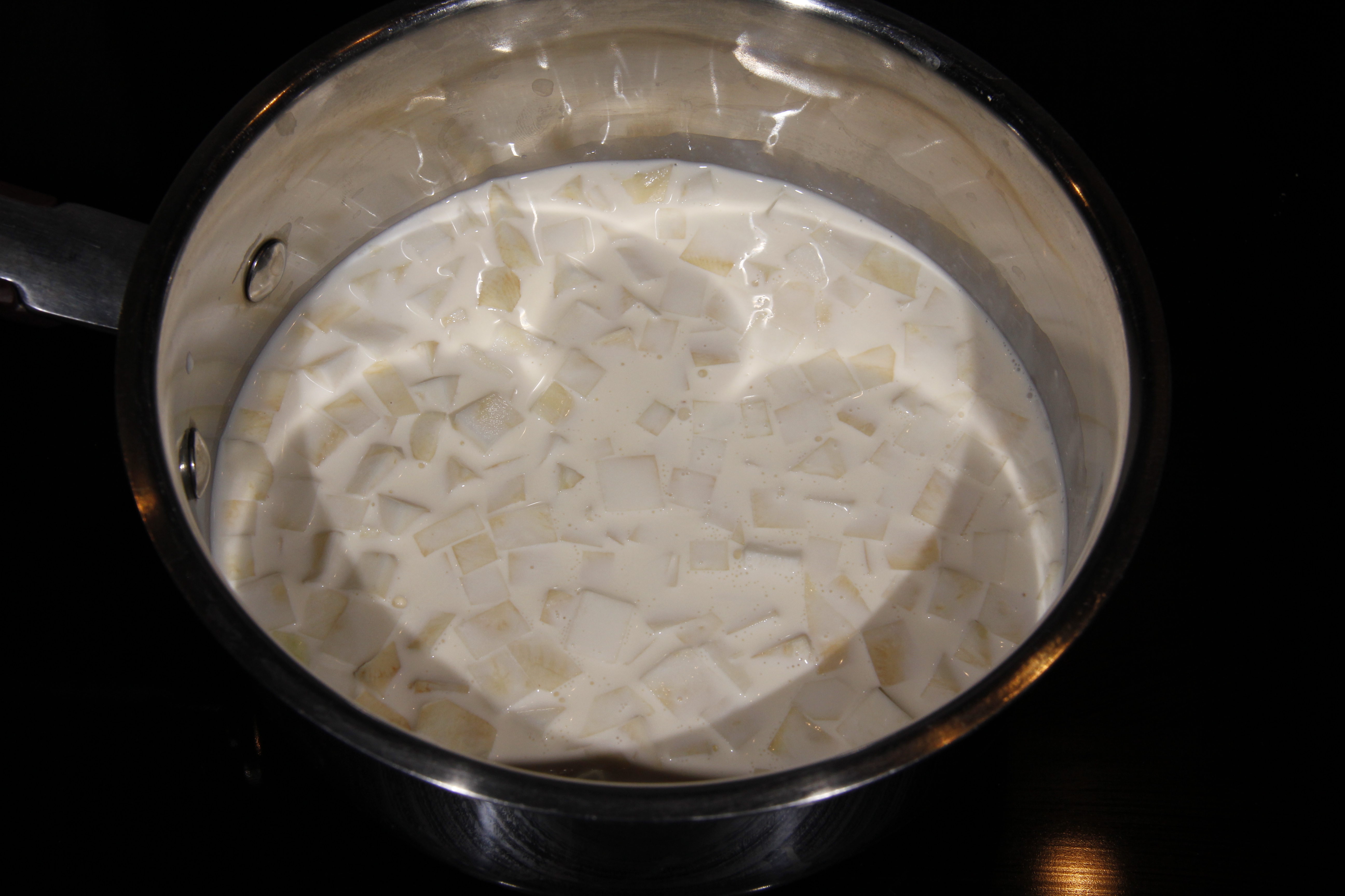 - Faites chauffer le lait mélangé au lait de coco.
