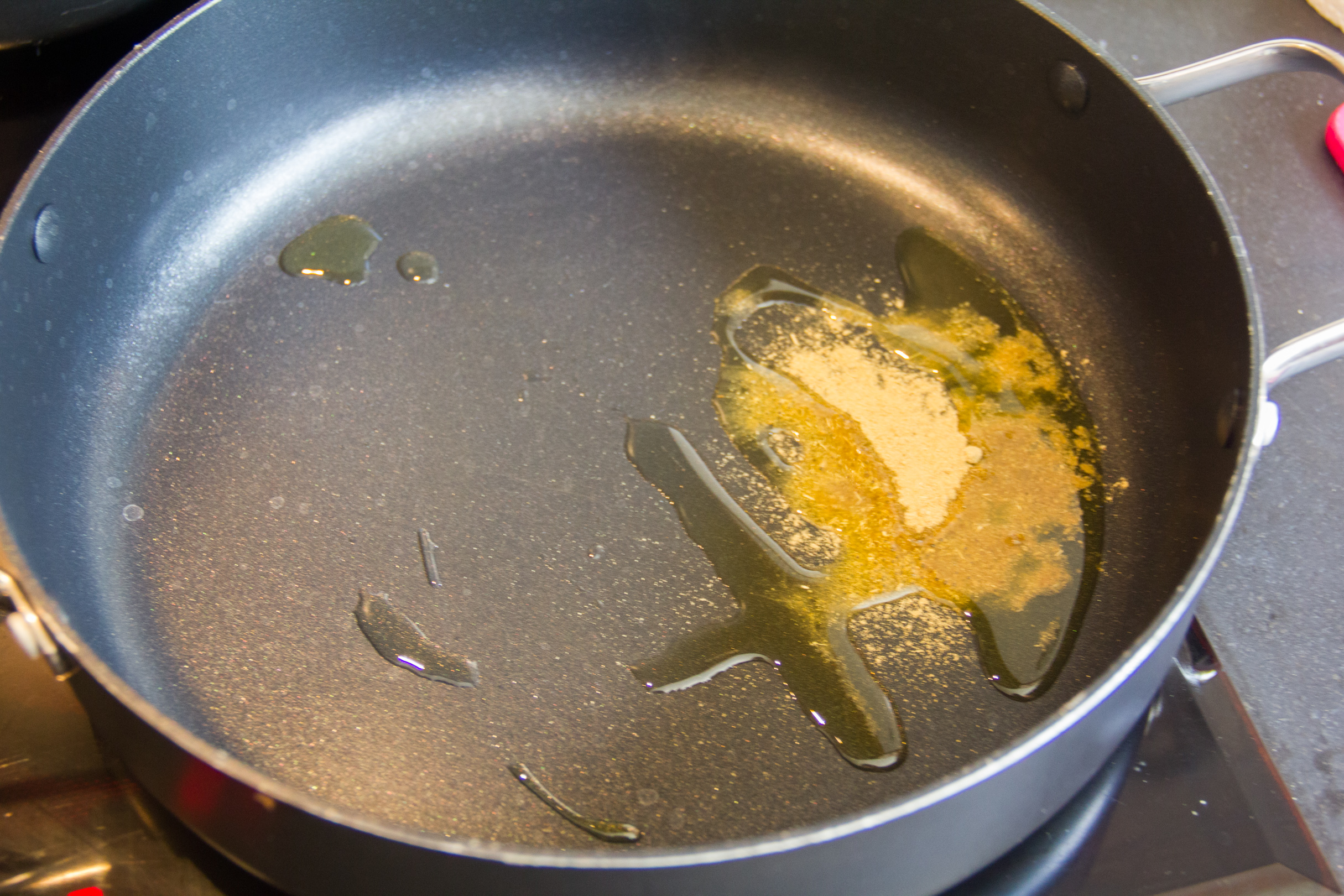 • Dans une poêle faites chauffer un peu d’huile d’olive et la cuillerée de poudre de fenouil.