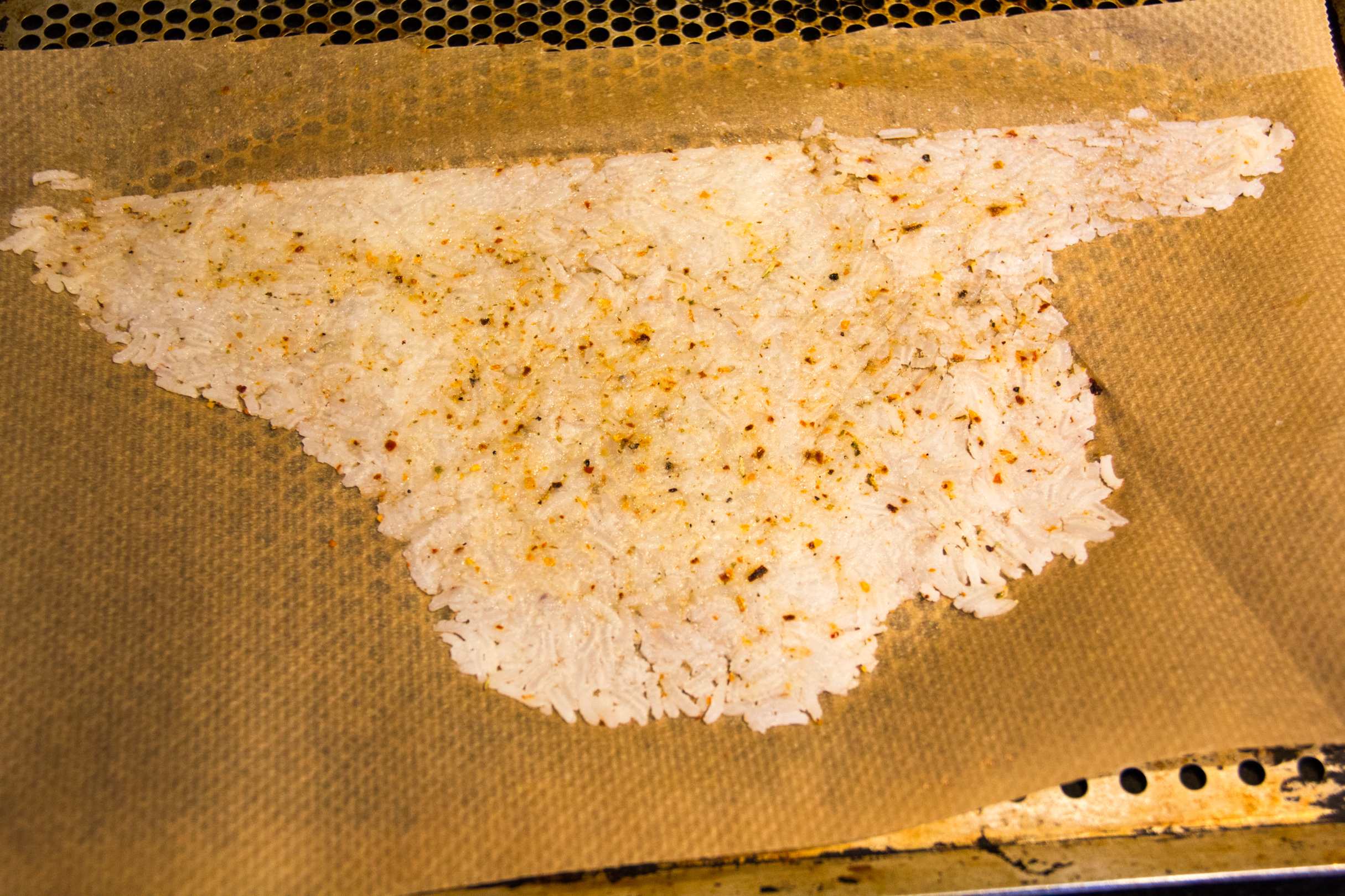 • Déposez le riz sur une feuille anti adhésive ou un silpat.