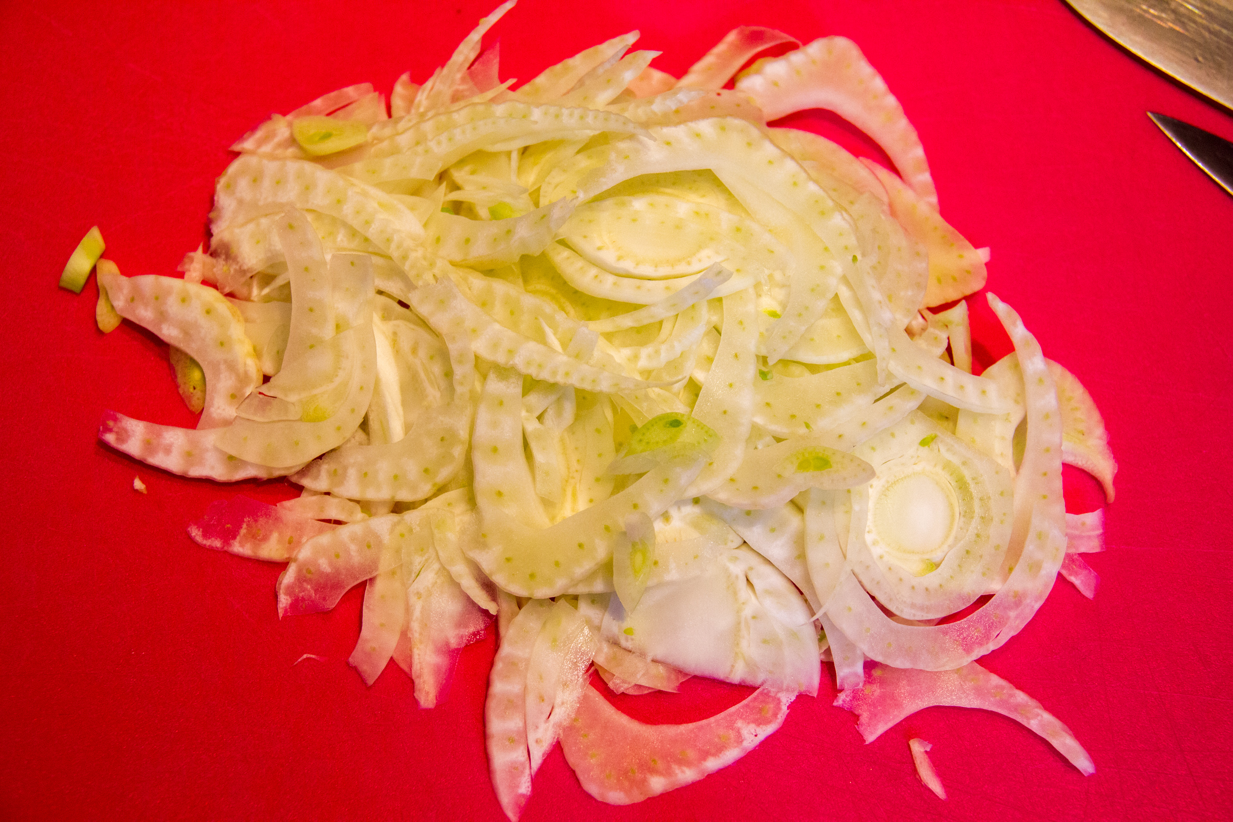 • Coupez le fenouil en fines lamelles: plus vous les couperez finement plus ils cuiront vite.
