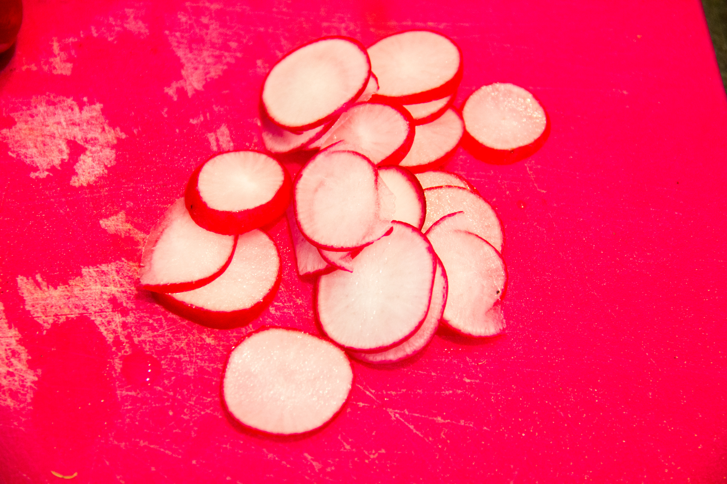 • Découpez les 10 radis en tranches fines.