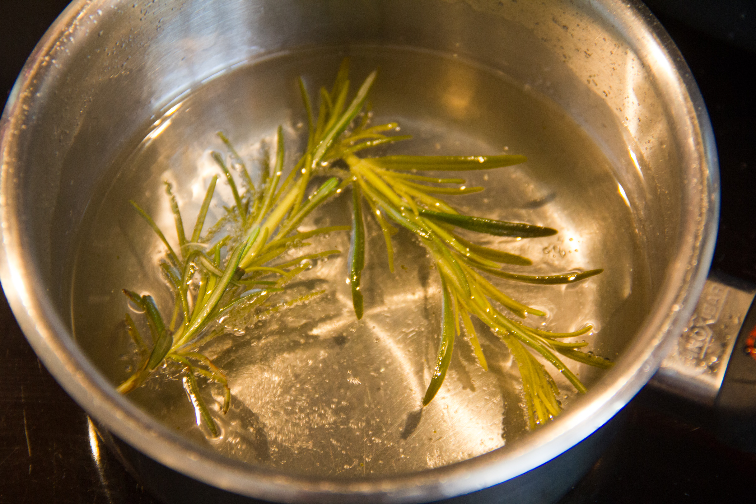 Faites chauffer le vinaigre, le sucre, la branche de romarin