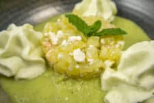 Concombre confit sous vide et son gaspacho, espuma à la menthe (recette sous vide basse température)