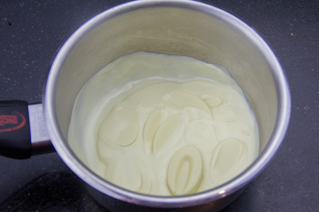 - Faites fondre les 60 g de chocolat blond (le Dulcey) au bain marie.