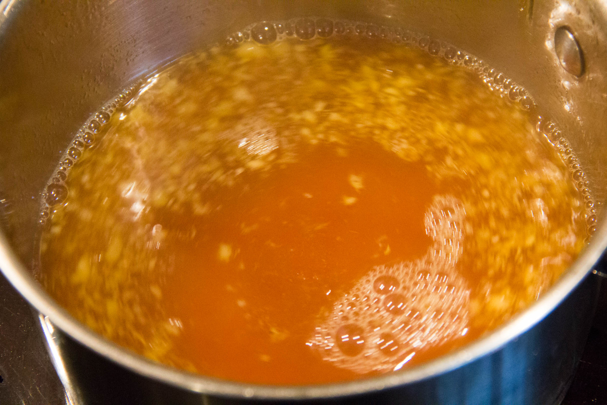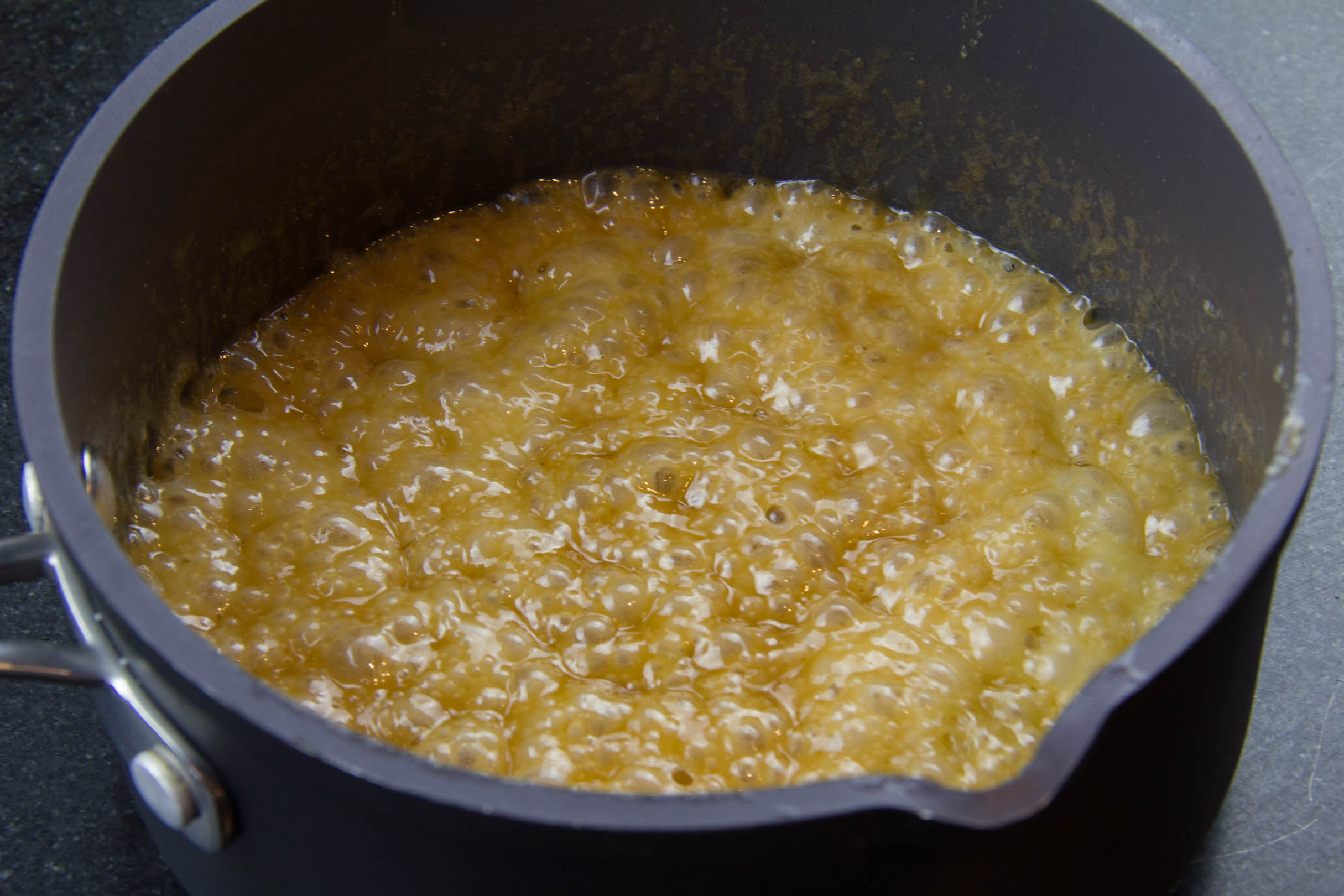 - Faites chauffer le sucre dans une casserole avec une petite cuillerée à soupe d’eau. Laissez cuire.