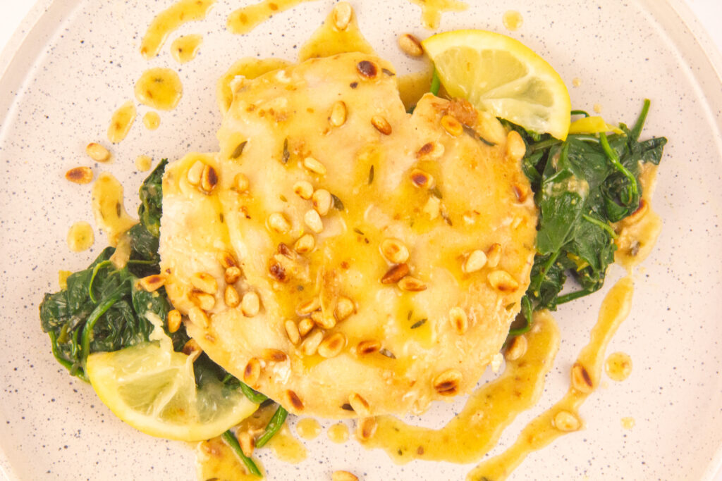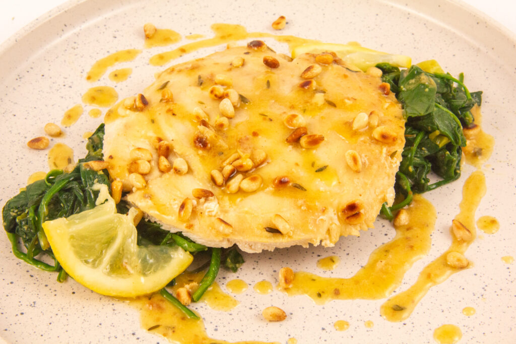 Le blanc de poulet n’est pas toujours apprécié par tout le monde car souvent trop cuit. C’est une chair délicate. Je vous propose cette recette de Tendre poulet au citron, épinards et pignons en cuisant le poulet en deux fois. Accompagné d’une sauce citronnée et d’une garniture d’épinards et pignons, ce plat aux ingrédients très simple devient un plat gourmand.