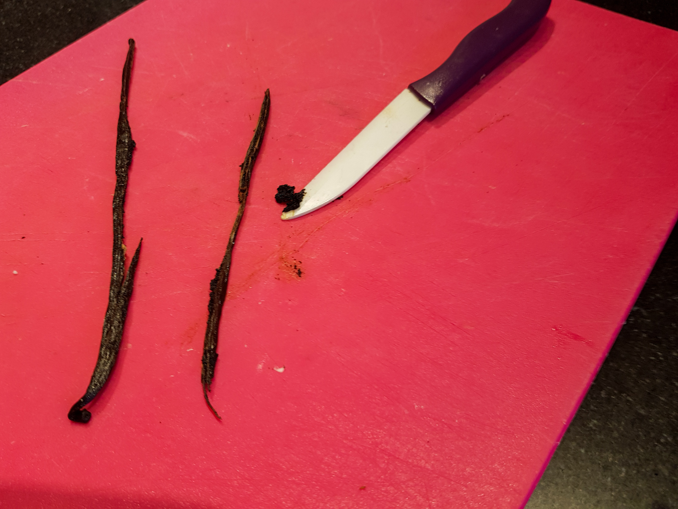 - Prélevez les graines de la gousse de vanille.